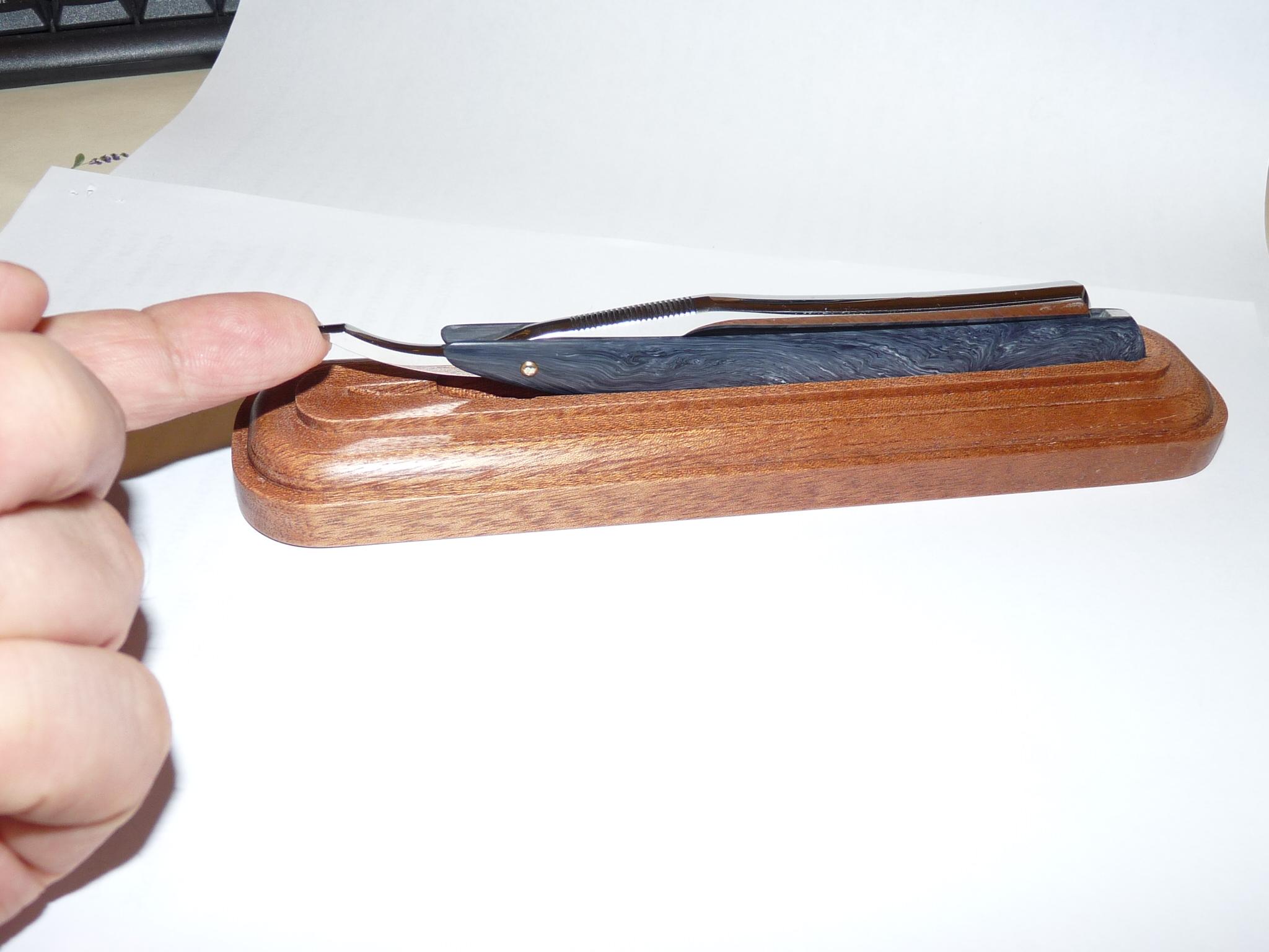 Мне кажется, что осевой пин при сушке бритвы раскрытой должен быть расположен выше носа клина, от греха его уржавления...