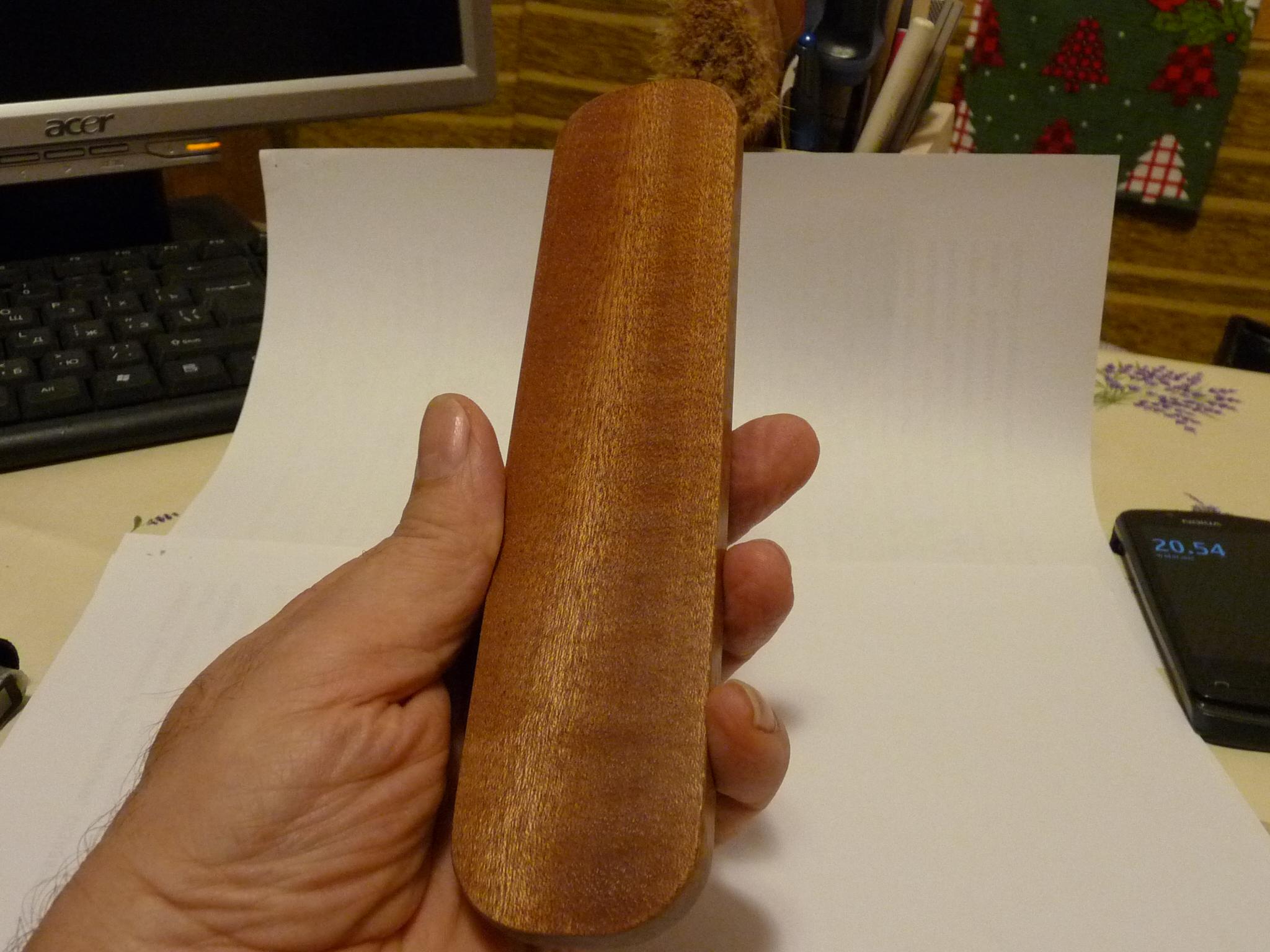 Красное дерево, даниш, затем воск мебельный, полировка. Подставка под конкретную бритву от ГВИКа (ручка из юмы/элфорина - моя, клинок от ГВИКа - спецзаказ). Возможно ещё сделаю для этой подставки колпачек, тоже из красного дерева... PS Фотки делал с линзой 10х, потому есть хорошее увеличение, если рассматривать... Добавлено спустя 8 минут 32 секунды: Последние три фото (вид - подставка снизу - там планирую фетр прилепить ярко-зелёный для контрасту - чтоб на полированном коммодике в спальне стояло, и не царапало полировку) - показал как переливается цвет дерева "золотым на темно-красном" в зависимости от наклона и освещенности.