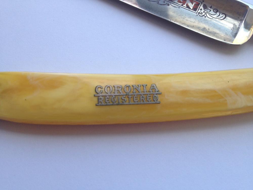 1) немецкая бритва Coronia, изготовленная известной немецкой фабрикой August Muller из города Solingen. Выполнена по спецзаказу для одной из прибалтийских стран в 20-е годы (а возможно и Финляндии). Поскольку выпуск этих лезвий был ограничен в количестве и во времени, то бритва эта представляет определенную ценность для коллекционера 2) немецкая бритва Coronia, изготовленная известной немецкой фабрикой August Muller из города Solingen. Выполнена по заказу СССР в послевоенные годы. Бритвы этой марки тех времен подразумевают под собой высочайшее качество и долговечность. Марка Solingen говорит сама за себя Ну и какая версия правдоподобней? ))))))