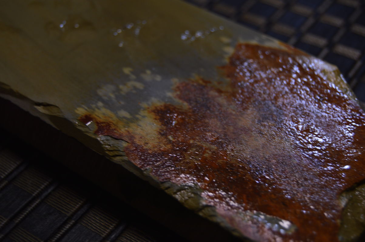 Re: Продаётся от artemarut1 Распродажа страницы №1Spoiler Show Японский камень, цвет солнечный (Иромоно), твердость около 4+ очень тонкий финишный камень, использовать лучше всего последним в сете, суспензию добровольно не дает, но очень легко выжать с помощью нагуры. Такой тип камней можно использовать без сета нагур, достаточно одной более твердой чем сам камень. Нет каких либо царапающих включений, линия на камне исключительно цветовая, обработан против расслаивания (бока и низ, некоторое время камень был в моем рабочем сете). Размер в максимуме 167/83/27мм Цена Продан Spoiler Show