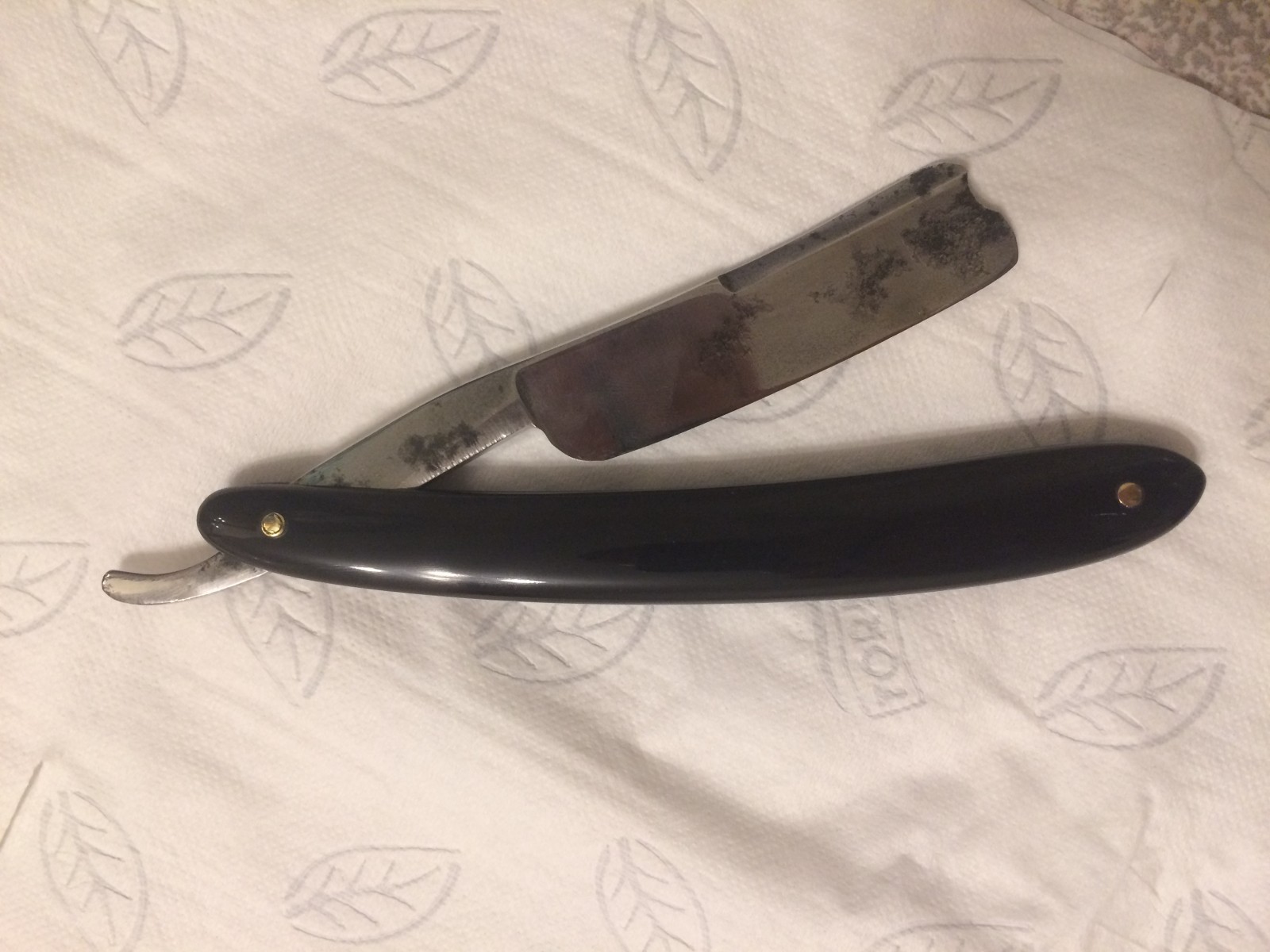 Нашел очень ржавый, за разумную цену. Две недели не торопясь, оставил нетронутым все что можно оставить. Рог, олово, нождачка. Фото до. Spoiler Show Spoiler Show Re: Бритва до... и после...doctorkobelev - Круто, а как удалось снять такую ржу и не повредить "буковки" производителя?