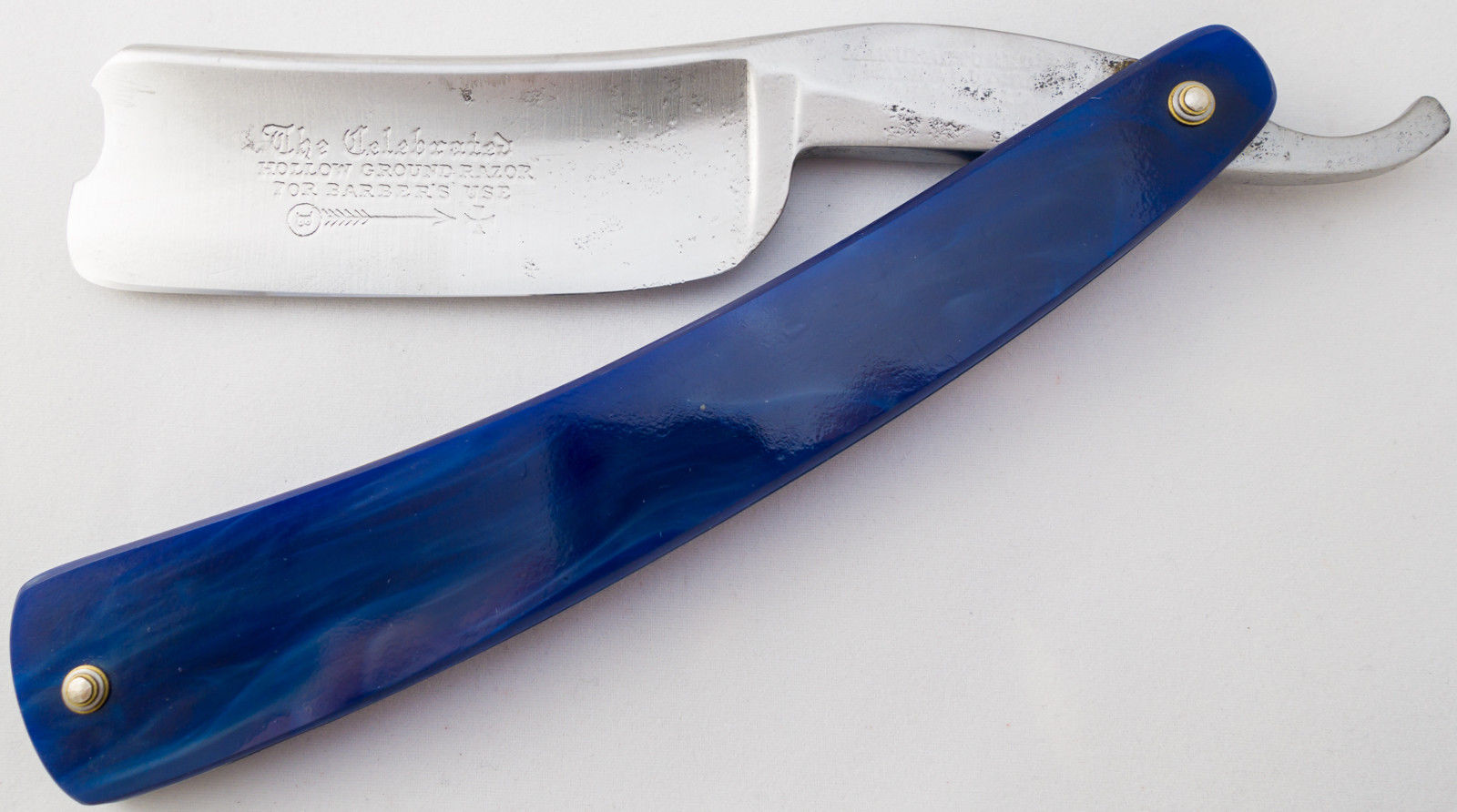 Прочитал там, что это более ранняя бритва, чем For Barbers Use или Magnum Bonum. Автор написал, что у него есть 4-5 таких "простых батчеров" клинов, но с более узким полотном. Зачем решил ее продать не написал.