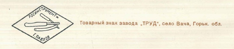Однако, присмотримя к бритвам. На них нет нового клейма, согласно постановлению ЦИК. А есть надпись "З-д Труд Вача".