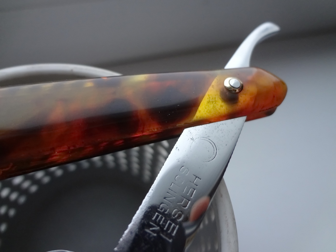 Помогите атрибутировать две немецкие бритвы...Друзья! Помогите пожалуйста атрибутировать "немку" SOLINGEN. Производитель N.ROSENKRANT(Z)-возможно последняя буква ушла под ручку. Стоит клеймо 960 и "рыба-кит" пронзённая мечём. По лезвию травлёный узор, посередине корона, по краям короны надпись SILBER----STAHL