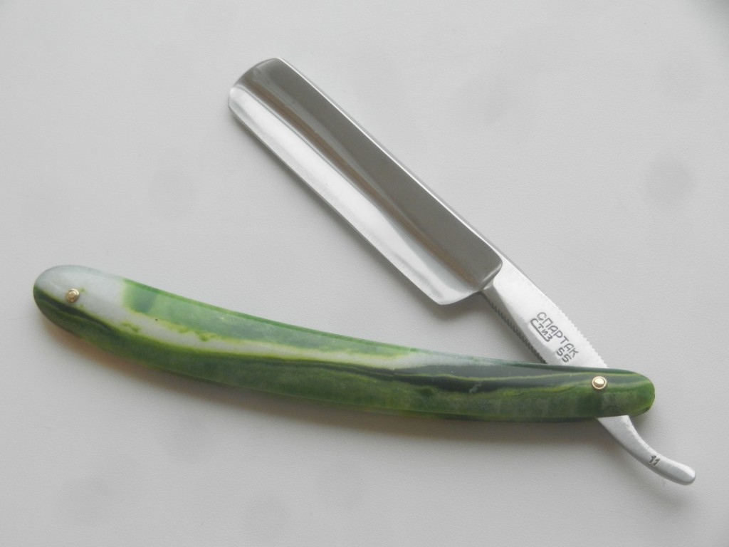 Продам опасную бритву СТИЗ "Спартак", 1955 год. Бритва после реставрации, в очень хорошем сохране. Красивая рукоять под перламутр. Насечки на эрле с двух сторон. Бритва разбиралась, прошла легкую очистку. Остались небольшие следы времени в виде темных точек на полотне. Собрана с оригинальными заклепками, клинок в оправе сидит плотно, по-центру, не болтается. Установлены осевые шайбы. Заточена, готова к бритью. В комплекте кофр для хранения. Почта по России входит в стоимость. Цена - ПРОДАНО