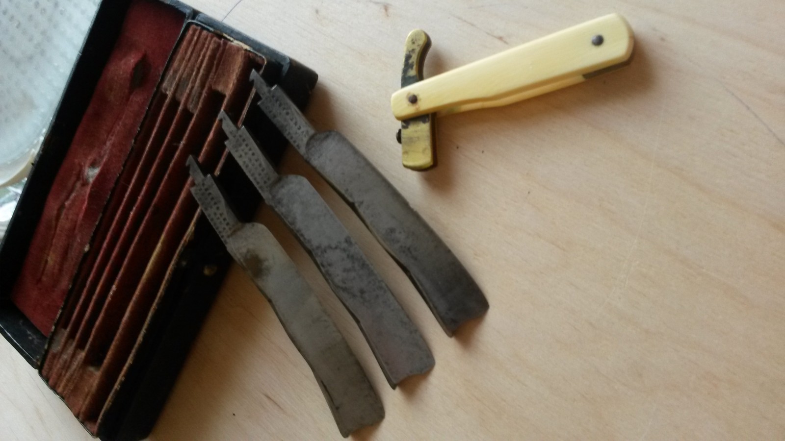 5, это точно, а возможно и 6 бритв совершенно непользованные были. Одна немного б.у., но тоже в прекрасном состоянии. Что удивительно, ручки из слоновой кости были все целы(за исключением одной),без трещин и сколов. Разобрал наборчик, немного освежил металл, где это было необходимо. В основном полотно не трогал, а почистил в районе осевого пина. И снова аккуратно собрал. За все время работы не расколол ни одной ручки, а ту ручку,что была с трещиной, хорошо проклеил с обеих сторон и отполировал. Коробочка из красного дерева также в отличном состоянии для своих лет. Пины двухцветные от нашего немецкого комрада Бабура. Короче, замечательный, редкий экземпляр.. Полюбуйтесь.. Добавлено спустя 40 секунд: Ещё фото... Всё будет ХОРОШО...тел:+79065827134