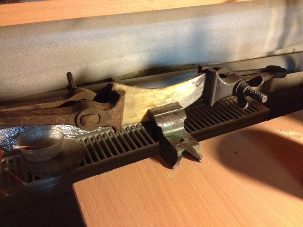 Надо время на размачивание и сушку, иначе ведет. Как-то срослось. Настоящая Камасутра.... Распиливаем на подходящие полоски. Замачиваем дня на 2-3. Кипятим. В пресс. Остужаем-сушим дня 2-3. Потом в работу. При обдирке ведет зараза, поэтому оч аккуратно. Результат вроде ничё....