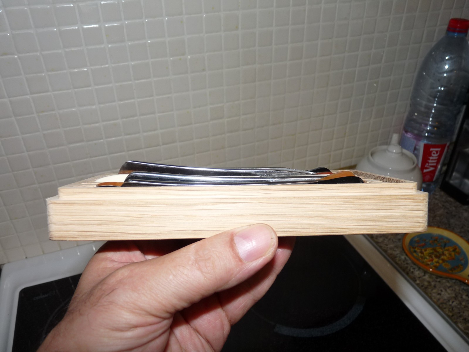 Для обычного "походного" варианта (вертикалка), можно и заузить немного нос и хвост/корму, конечно, но всё равно плоскости не пересекутся на длине короба 180мм и ширине 25мм, а если увеличивать длинну, то возвращаемся к предыдущему абзацу. Вот если всё заузить и при том зализать все углы, то будет интересно, кмк, опять же для поездок - чтоб не цеплялось ни за что. Но я использую обычно 2 бритвы при бритье, и потому такой вариант "для походов" мне не комильфо. Если же использовать 2 вертикалки в 1 коробе, то интересно, но тут, мне кажется, интереснее использовать сменные вкладыши для одного и того же короба - типа "2 вертикалки" или "1горизонталка" - причем их можно заменять, при желании. Кстати ТьерИссар делает подобное, но настолько грубо... как всё, что они, в общем-то, сейчас делают... Форма короба типа бакелитовой "от пумы" от сургутянина тут (в этой же теме) уже была, года 2 назад (я бы сейчас сделал более прецизионную посадку бритвы в ней, без болтанки. но заказчик, как я понял, от исполнителя такого не требовал... Но, если делать "а-ля Пума", нужно понимать, что это будет именно склейка двух частей. На ЧПУстанках без 4й оси сделать такой кофр монолитным невозможно. Инь-янь - у меня оно и есть (абсолютная центральная симметрия), но закруглить борта выборок никак не могу ибо тогда "съедается" перемычка между инью и янью, или придётся увеличивать расстояние между ними, что приведёт к увеличению ширины короба, что... не нужно в общем... кмк. Вот для 2х вертикалок это более конструктивно возможно, да, там ширина менее существенна (если не сменный вкладыш это). Вот такие технические соображения. PS ну всё-таки взял термоясеня немного + красного дерева, по случаю. И всё же замечу для интересующихся, что термоясень (4.1...4.2) немного плотнее простого ясеня (4.0...4.1) и дуба (3.7...3.9), НО даже простой дуб стабильнее ясеня термообработанного - дуб =4, ясень=2, термоясень=3. (http://parketcapital.com/novosti-i-stat ... esini.html" onclick="window.open(this.href);return false;) Баллы Стабильности древесины: 5 - Абсолютно Стабильная ( древесина не деформируется даже при больших перепадах влажности воздуха ) ; 4 - Стабильная ( древесина практически не деформируется при небольших перепадах влажности воздуха ) ; 3 - Относительно Стабильная ( древесина весьма незначительно деформируется при небольших перепадах влажности воздуха ) ; 2 - Средне-Стабильная ( древесина заметно деформируется при небольших перепадах влажности воздуха ) ; 1 - Не Стабильная ( древесина значительно деформируется при небольших перепадах влажности воздуха ) Сделал из дуба "двойку плоскую" (нутрянку вырезал, внешнюю часть ещё нет), красиво - мне нравится, пока не стал обрабатывать никак...