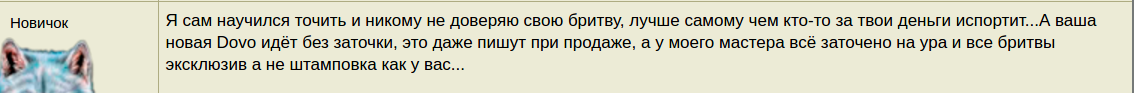 Re: Моя новая бритва от МастераНу над к тем у кого репутация есть на форуме обращаться, и норм заточат. А самому точить надо руку набить, изучать много чего и дорогостоящие камни и не только покупать. Проще отдать несколько сотен рублей и получить крутую заточку на крутых камнях. И не париться) Dovo Best Quality 5/8", 1/2