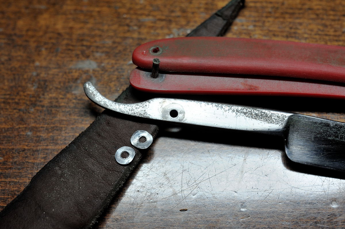 Отмечаю, что материал шайб не имеет ржавчины, в месте контакта шайбы с лезвием также чисто - значит, делаю вывод, что опытным путем двухлетней эксплуатации установлено, что материал из отражателей потолочных подвесных светильников вполне себе пригоден для изготовления внутренних шайб.