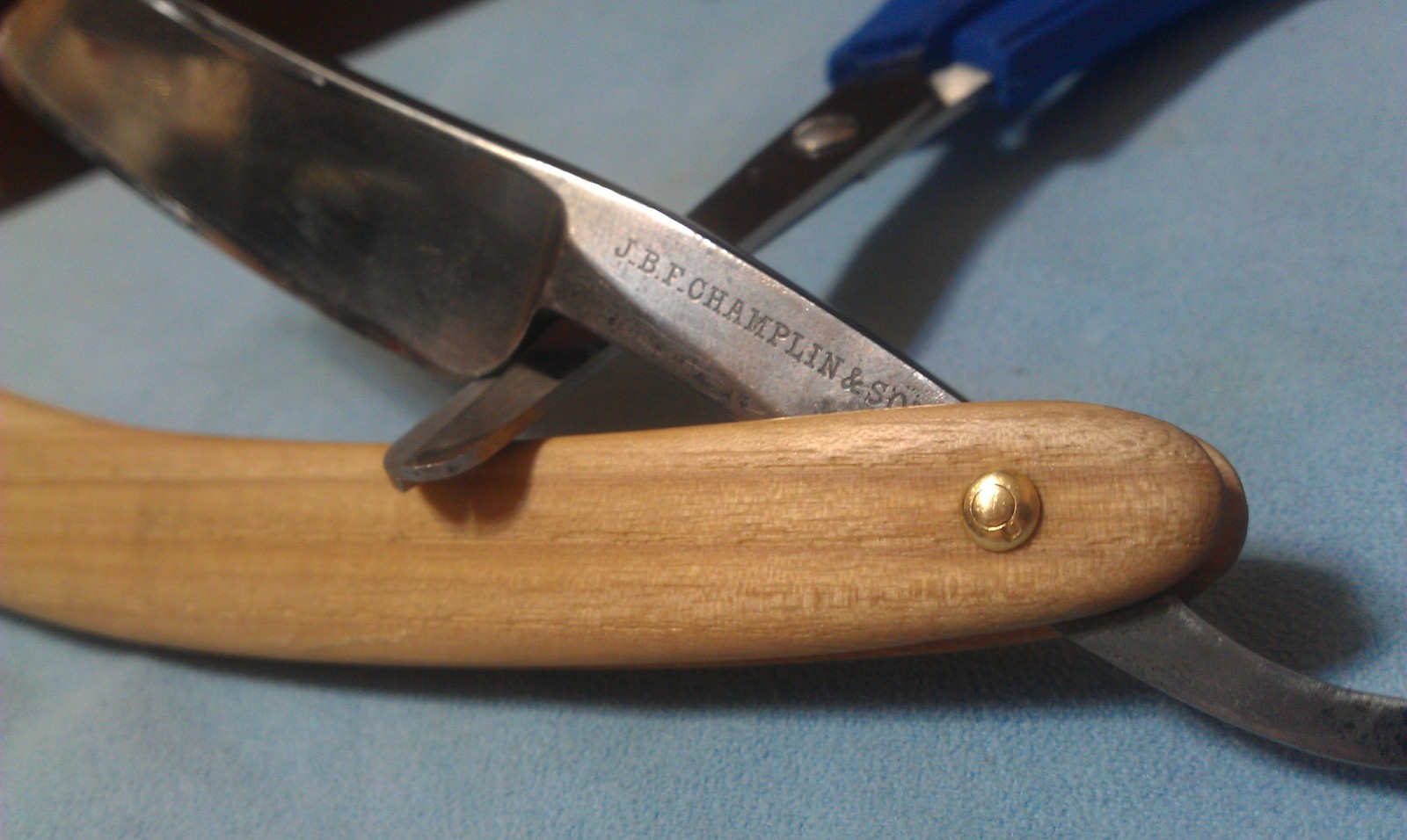 Re: Ручка (оправа) бритвы - изготовление/ремонтВсем доброго вечера , сварганил оправу из дерева  дляJBF CHAMPLIN&SON,старая роговая розсыпалась, че за дерево незнаю ,плотник выделил. Пропитал отбеленой льнянкой.Фоткал на телефон.
