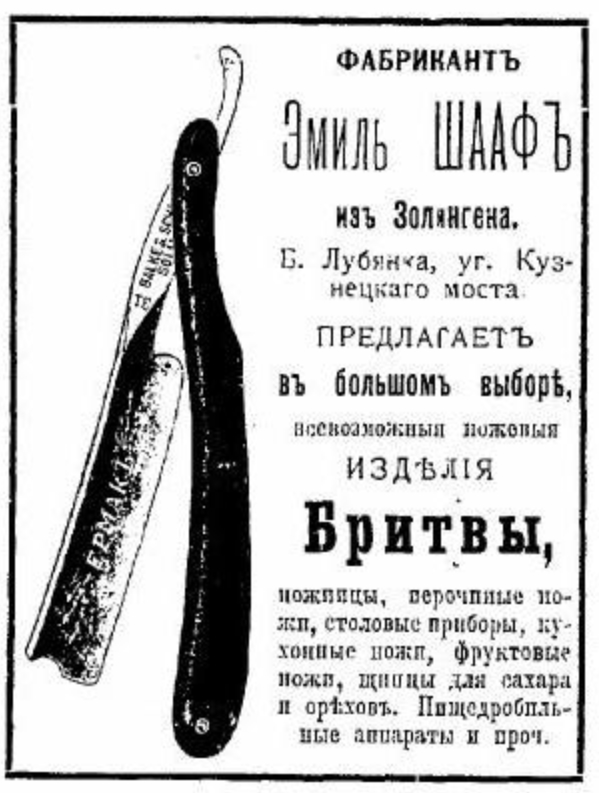 С началом Первой мировой войны немцы Шафы вынуждены были покинуть Россию, и прдолжили дело на родине, неоспоримым доказательством чего является пехотная сабля образца с клеймами – «1955 г. Золинген, мастерская Шафов».