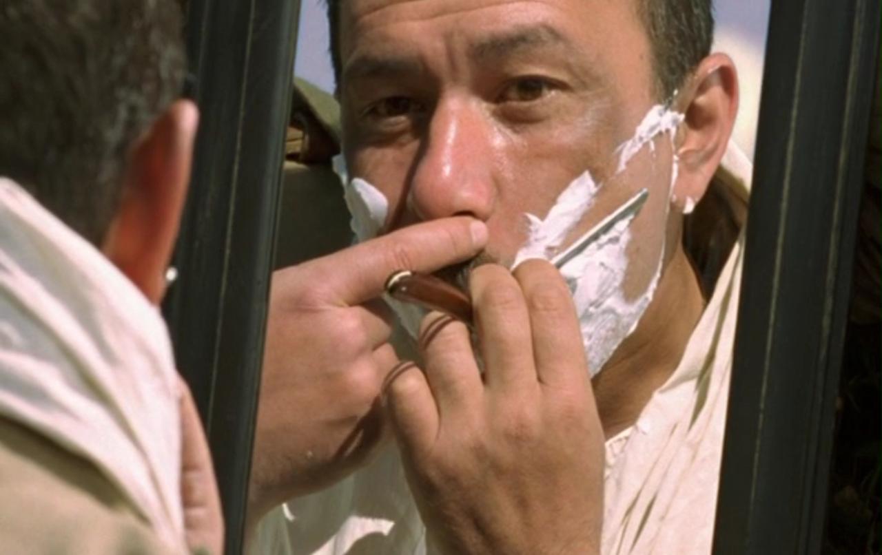 Re: Фильмы с участием опасной бритвы"Иисус. Бог и человек". Режиссер Роджер Янг, 1999 год. Бритье, а точнее- подбривание бородки Понтия Пилата (в исполнении Гарри Олдмена) римской бронзовой бритвой с использованием такого же зеркала.
