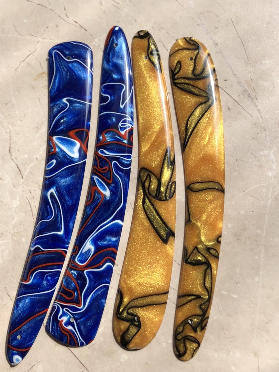 Re: Ручка (оправа) бритвы - изготовление/ремонтНасмотрелся последнее время на рукояти Алексея, исполнение конечно на уровне - отличная полировка, хорошее соблюдение классических форм, но вся беда на мой взгляд кроется в том - что формы классические а материал новый, с непонятными цветами, переливами, словно смотришь на сопли пришельца, смешанные с чернилами каракатицы, посыпанные металлической стружкой, при всем при этом - видишь родной аглицкий клин с рукоятью подобающей формы и эти странные цвета, такое должно нравиться поклонникам грибов, трав, и ударных доз алкоголя, у остальных это вызывает когнитивный диссонанс. Материалы конечно имеют место быть но на рукоятях других форм и желательно на новых кастомных бритвах.