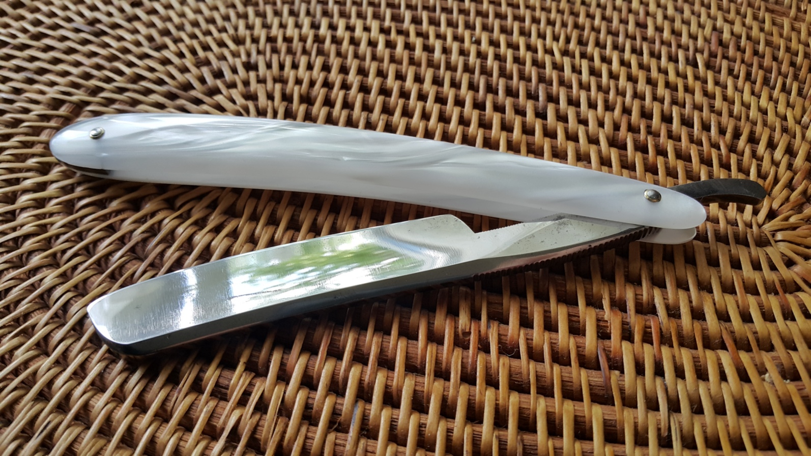 В очередной раз заказал у Aleksey7 приведение в порядок клинка вкупе с изготовлением новой оправы, в этот раз выбрал перламутровый белый киринит. Великолепный результат! Это уже четвертая киринитовая оправа от Алексея в моем собрании. Рекомендую!
