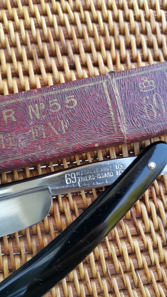 Продаётся от S&T29. Винтажный французский фрэймбэк, модель 55 от Thiers-Issard. Ширина клинка 22мм, ручка - пластик. Всё родное, бритва не разбиралась. Родной футляр. Самые минимльные следы времени. Бритва заточена.