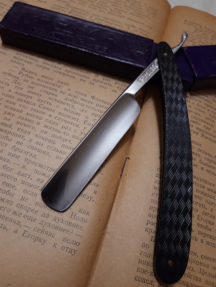 Бритва "Москва" с гравировкой на полотне появилась в 1946 или 1947 году. На фото видно и нестандартный ромб и принадлежность к ММП и отсутствие года на клейме бритвы.