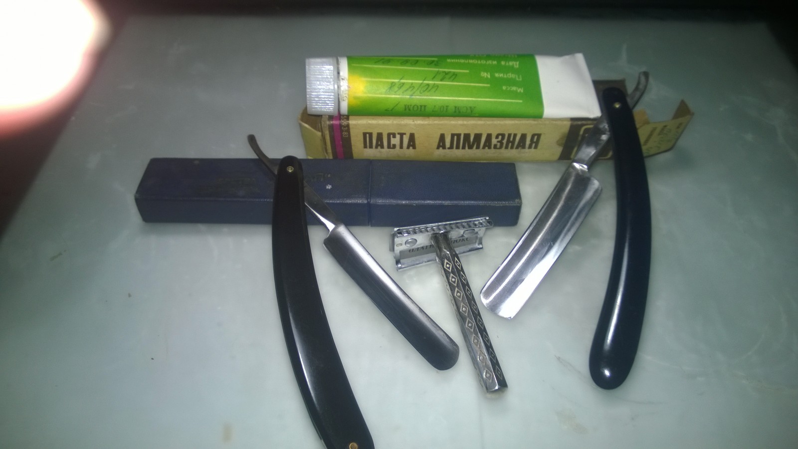 Re: Добыча с барахолкиСегодня очень удачный день. Приобрёл две бритвы: Яхта-58 г. и Узкая-67 г. с домиком, тэшка - (не удержался, сразу заправил последнюю новую Рапиру и попробовал побрить голову, впечатления самые положительные), алмазную пасту 91 г. выпуска 10/7, и тисочки