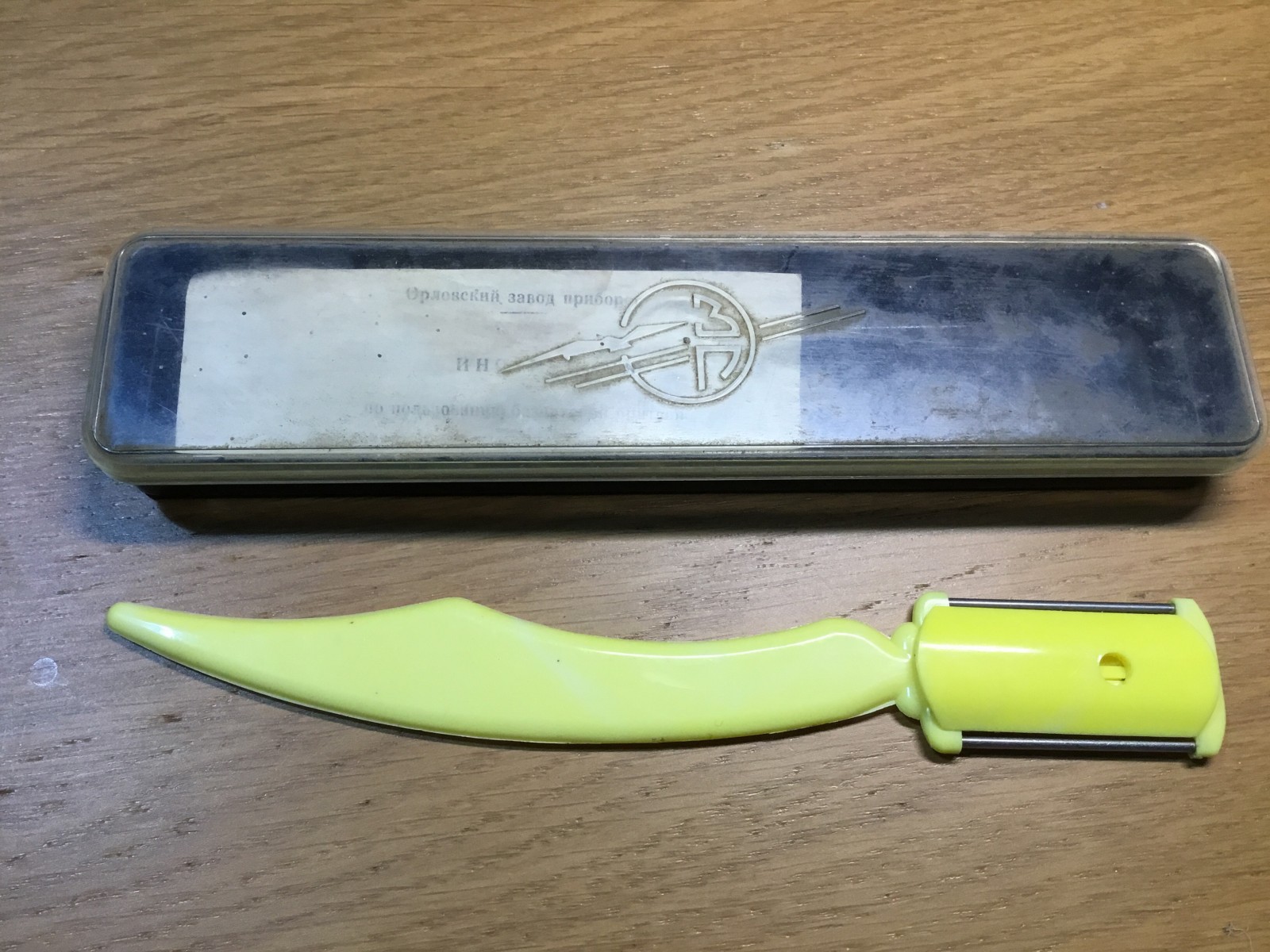 Министерство машиностроения для лёгкой и пищевой промышленности и бытовых приборов СССР. Московский механический завод "Красная звезда", г. Москва, ул. Пушкинская, 32. Безопасная бритва "УТРО" из инструкции: Знаком "треугольник" обозначен угол острого бритья только черная ручка как-то не вяжется с понятием "утро", может этот вариант назывался по другому. Re: Станки производства СССР и постсоветского пространства.Чёрная ручка для понедельника ))). За помощь большое спасибо.