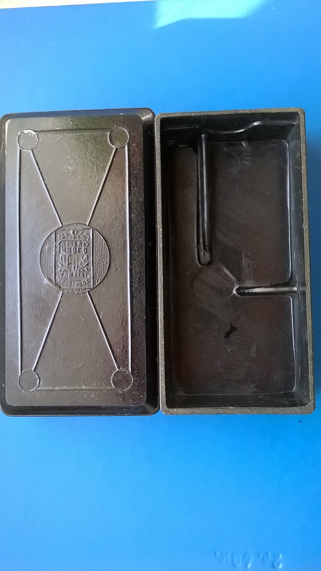 Re: Станки производства СССР и постсоветского пространства.Добрый вечер. Сегодня разбирал полку, где храню станки и натолкнулся на карболитовый футляр с бритвой Красная звезда. Как то раньше я не заметил, что футляр от другой бритвы. Артель Много ПРОМ Ташкент Горпромсоюз. В интернете информации никакой.