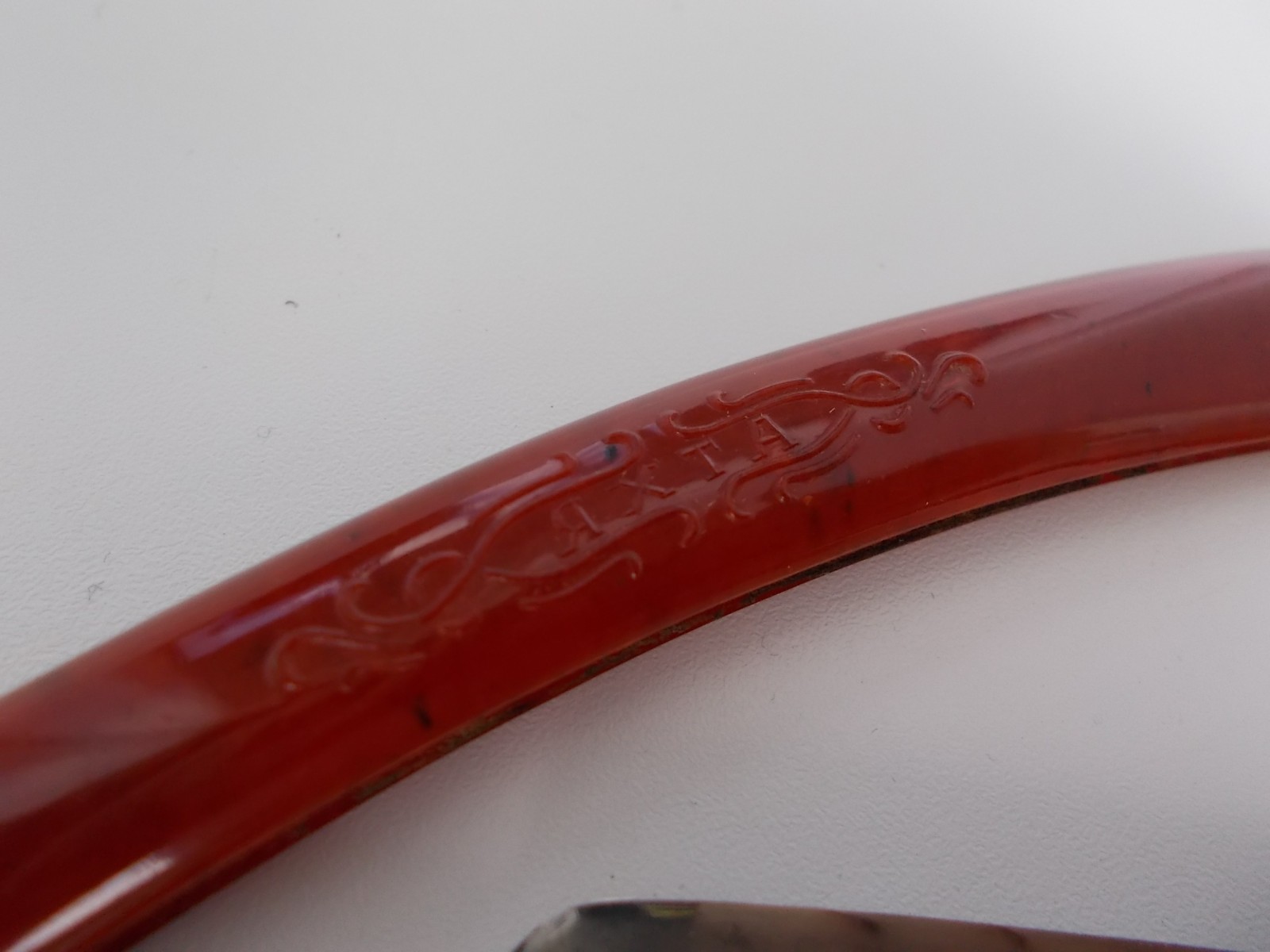 Вторая бритва в знакомой коробке г.Павлов на Оке, Горьковского края. Бритва вероятно номер 1102 из того же альбома. Незнаком для меня материал ручки. Чёрный, достаточно твёрдый материал, не уверен, что карболит.