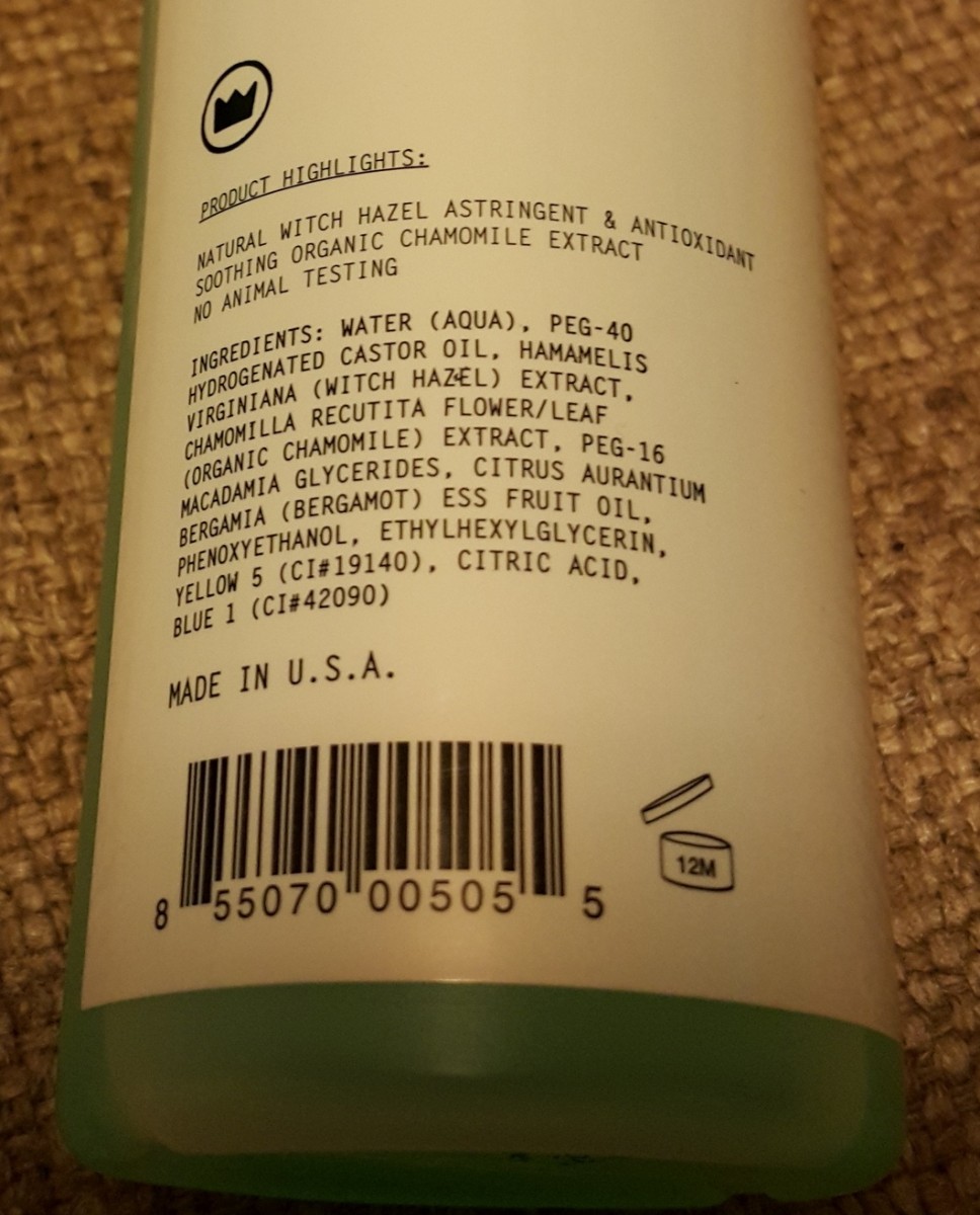 В составе присутствует гамамелис (Witch Hazel). Удобная бутылка с пробкой-перископом. Очень легкий и ненавязчивый запах бергамота. В Москве продается в магазине Brandshop на Петровском бульваре, вроде и доставка по России у них есть. Достойная вещь, рекомендую.