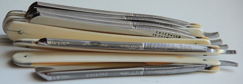 Бритв всего 6 штук. Одна продалась сразу, не успев засветиться . Бритвы в первозданном виде. Ничего не разбиралось и не ремонтировалось. Заводской гринд полотна, идеальная геометрия изготовления.Сталь и кромка чистые, без проблем. В общем и целом слон в очень хорошем состоянии. На небольшие трещинки в районе нижнего пина можно не обращать внимание, так как на дальнейшую эксплуатацию они никак не повлияют. И для оправ из слоновой кости это есть нормальное явление. Бритвы в очень удобном исполнении и размере , для новичка или любого пользователя Бритвы. Перед отправкой будут заточены и доведены до комфортного бритья.