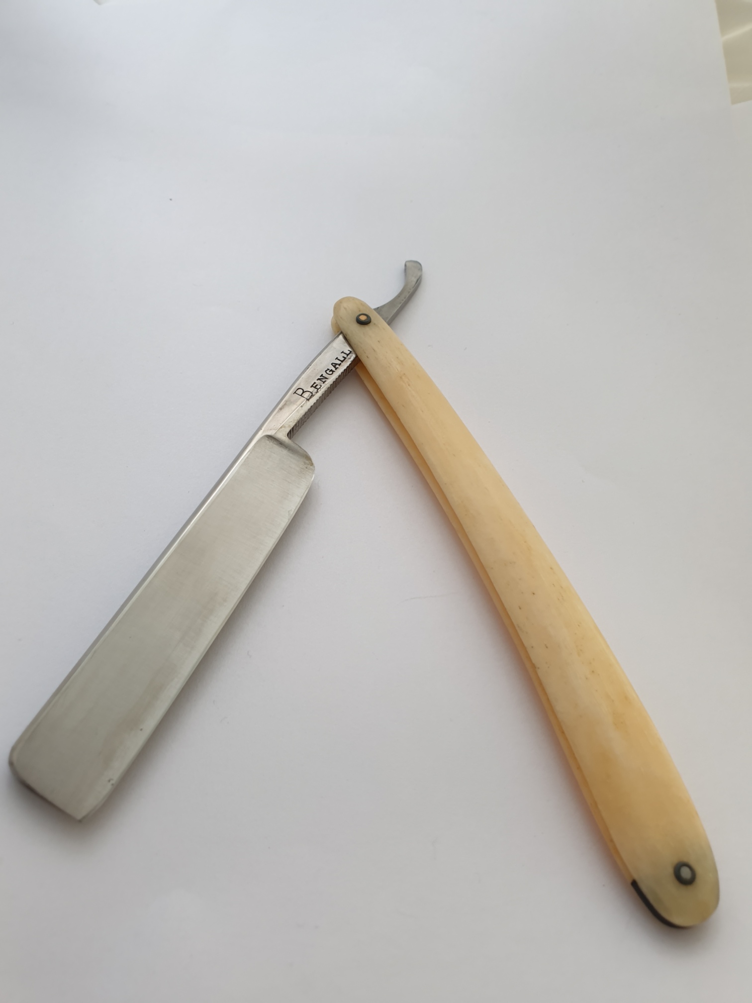 Продаётся от S&T28. Клин Bengall в шведском исполнении, размер 5/8 (16мм), обух 5мм, ручка - кость. Всё родное, бритва не разбиралась, не восстанавливалась, сделана только заточка у Aleksey7.