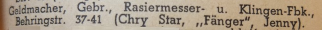 срок регистрации истек в ноябре 1998. зарегистрирован на имя Gebr. Geldmacher, владелец Ernst Geldmacher . Кстати, бритвы Gebr. Geldmacher тоже встречаются.