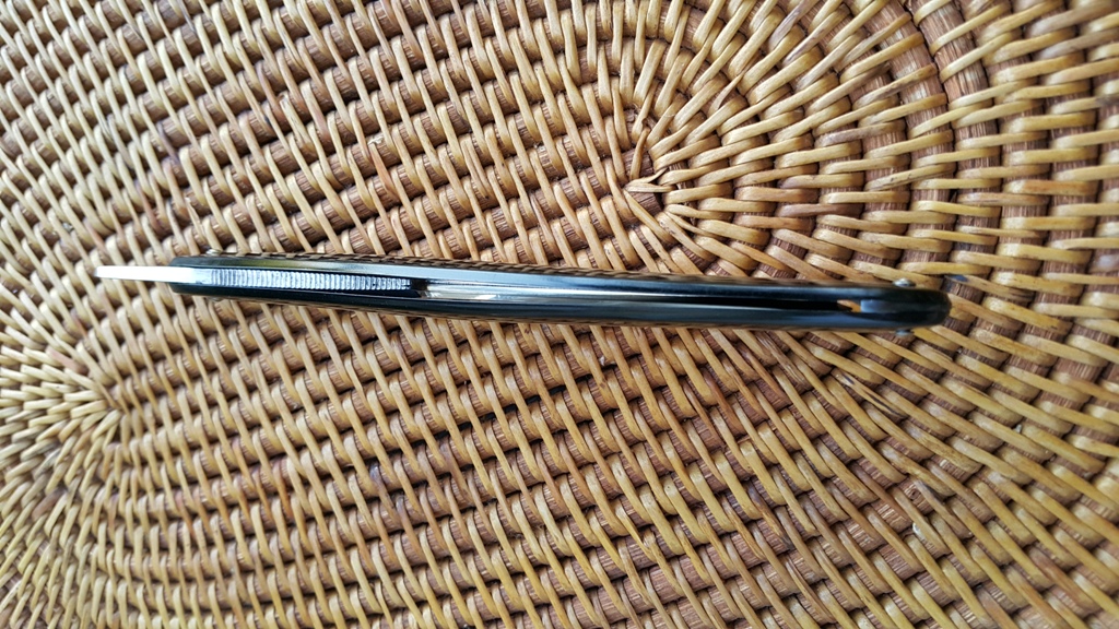 Re: Продаётся от S&T25. Предложение для коллекционеров: довоенная бритва завода Мосштамп, 1935 год, в родном футляре. Вроде как все родное. Выборка 1/2, гринд грубоватый, ширина 16 мм, обух 4,5мм. Ручка - пластик. При вхождении клинка в ручку чуть закусывает на самом дальнем конце. Оригинальное состояние, бритва не разбиралась, не шкурилась и пр. Бритва не заточена.