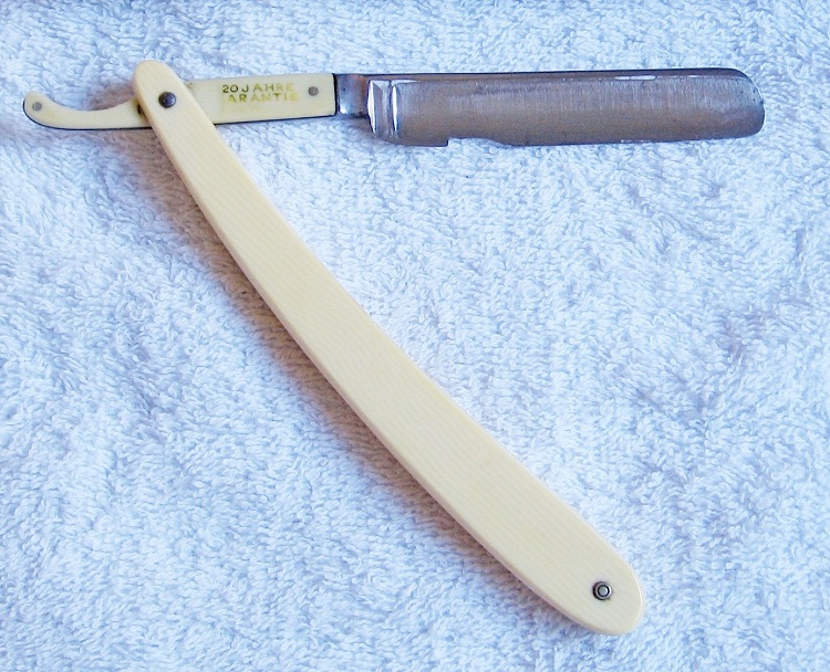 :Год выпуска предположительно 1905г.В то время данная фирма открывала филиал в Америке. Бритва продавалась или вручалась нашим либо морякам либо участникам подписания мирного договора с Японией в Портсмуте США 5 сентября 1905 года между Россией и Японией.