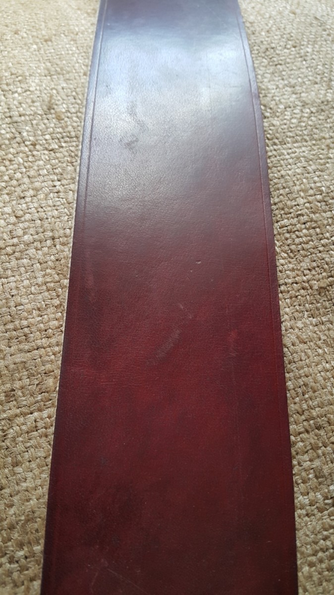 Насчет сорта кожи точной информации нет, фантазировать не буду. Клейм производителя тоже нет. Ширина 7,5см, длина рабочей зоны кожи для правки - 45,5см, длина рабочей зоны хлопковой стропы чуть короче - 40см. Общая длина - 71 см от верха подвеса до низа ручки. Толщина кожи 3мм, толщина хлопковой стропы - 2,8мм. Полностью разборный винтовой крепеж (не заклепки).Ручки из кожи в 2 слоя. Цена продано на другом ресурсе Spoiler Show Spoiler Show