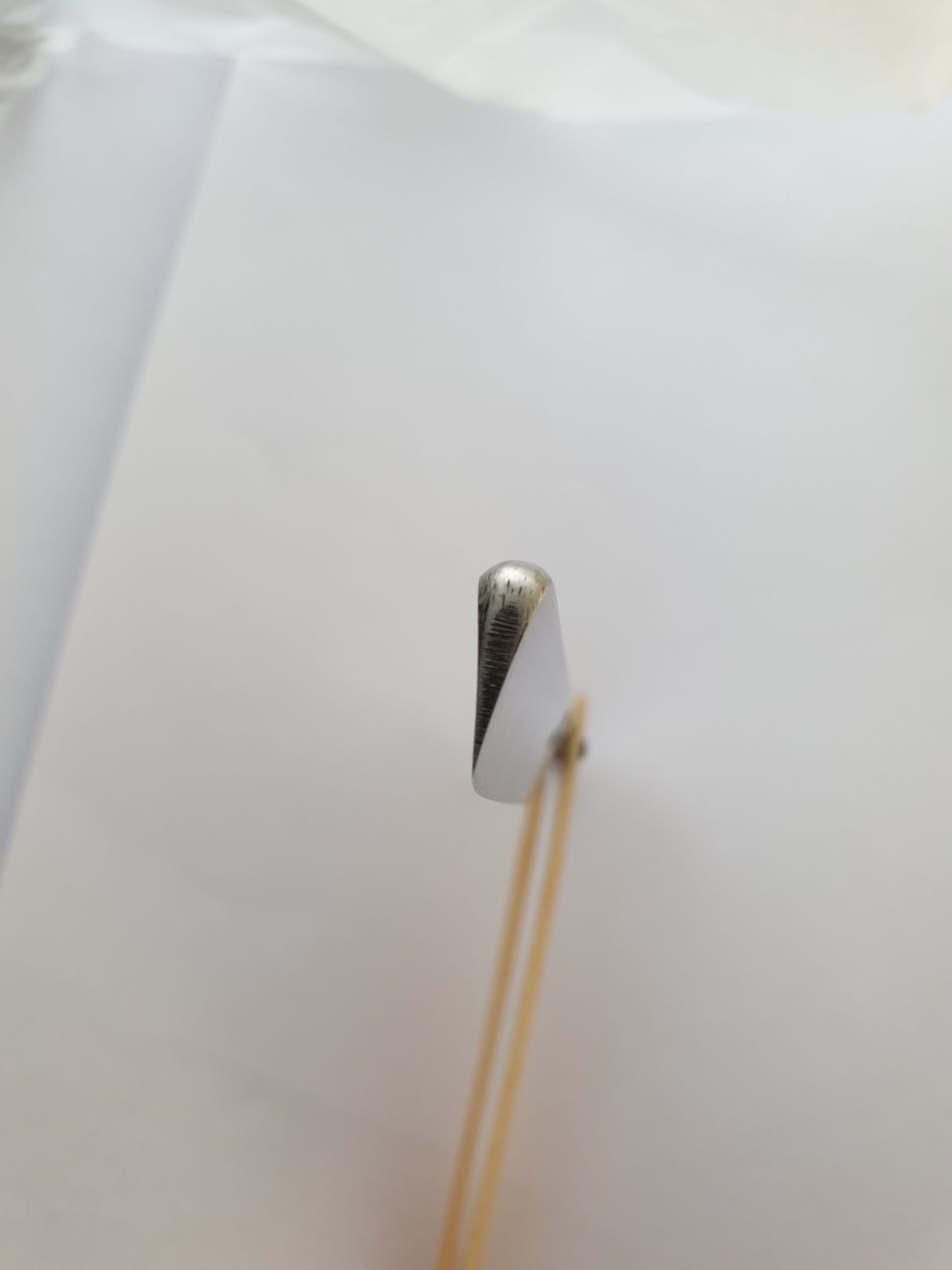Re: Продаётся от S&T25. Предложение для коллекционеров: довоенная бритва завода Мосштамп, 1935 год, в родном футляре. Вроде как все родное. Выборка 1/2, гринд грубоватый, ширина 16 мм, обух 4,5мм. Ручка - пластик. При вхождении клинка в ручку чуть закусывает на самом дальнем конце. Оригинальное состояние, бритва не разбиралась, не шкурилась и пр. Бритва не заточена.