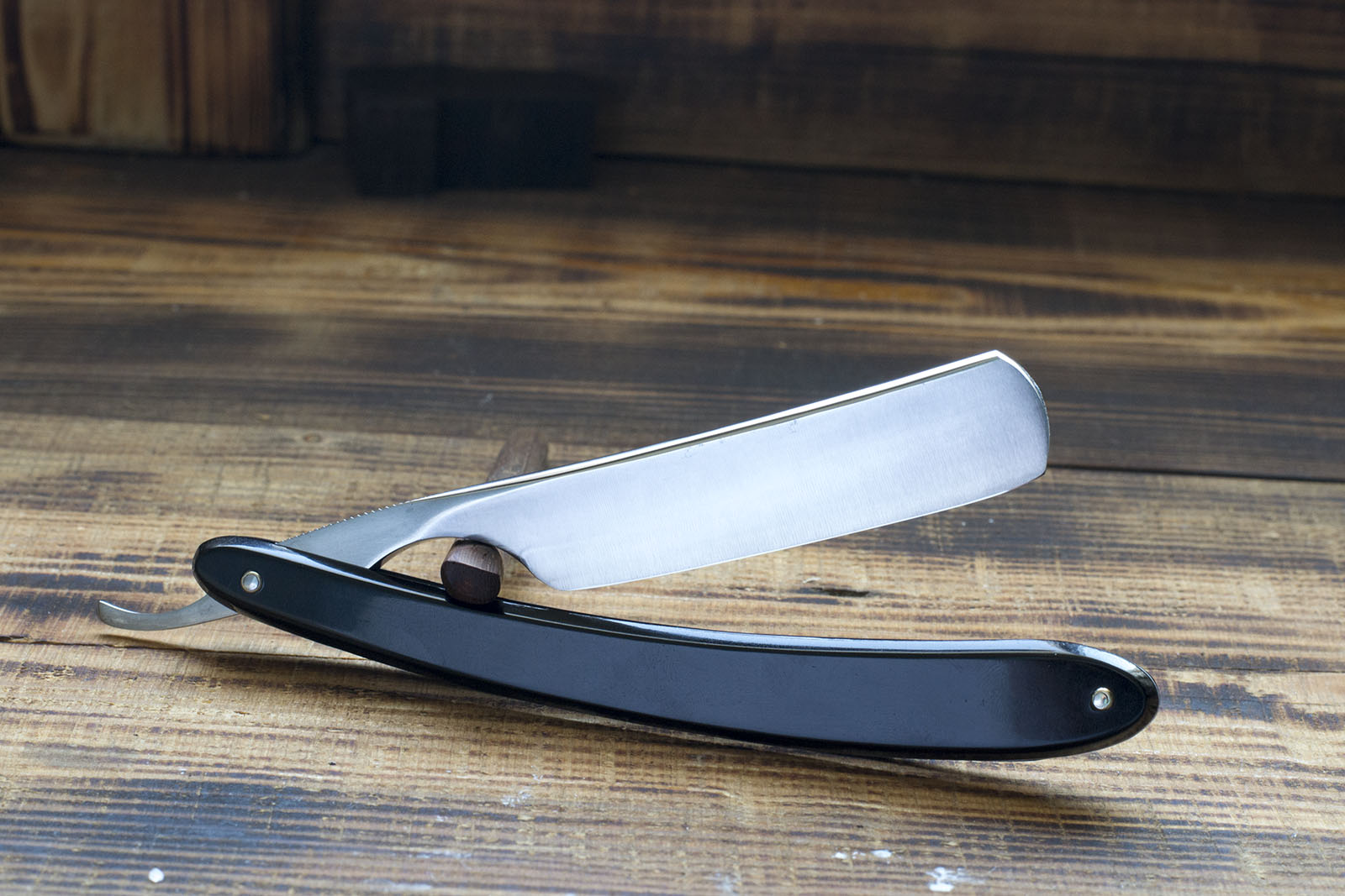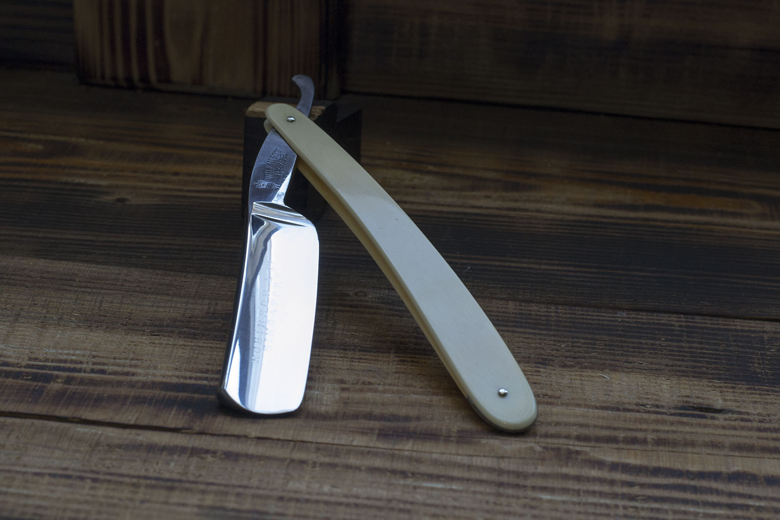 Одна из редких бритв моей коллекции - английский клин от Joseph Wostenholm, торговой марки EBRO. На полотно нанесено травление с символами масонства и поскольку резист перед травлением наносился вручную, каждую такую бритву можно считать отдельным штучным произведением искусства того времени. Бритва произведена середине 19 века, выполнена из качественной углеродистой стали, геометрия полотна на довольно высоком уровне, поэтому было решено оставить бритву в максимально оригинальном состоянии с. Я всего лишь отполировал полотно, немного поработал с травлением и произвел заточку, так же была изготовлена новая рукоять из рога африканского буйвола. Ширина 21 мм., бритва заточена и готова к бритью, отличный коллекционный экземпляр в редкой сохранности. продано EBRO Show
