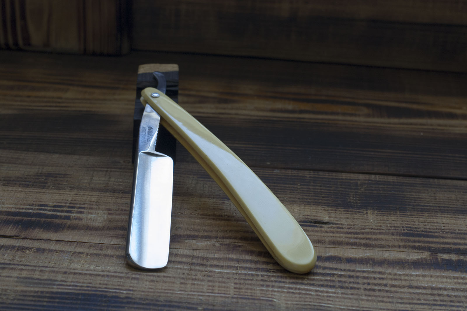 Германская бритва второй половины 20 века изготовленная из фирменной нержавеющей стали Friodur от компании Henckels. Об особенностях данной стали мало что известно, кроме того что запатентована в 1965, содержит неизвестное количество легирующих элементов - хрома и углерода и поддвергается фирменной криозакалке. По факту это дает режущие свойства сопоставимые с бритвами из углеродистой стали, кроме того обеспечивает высокую сопротивляемость коррозии, именно поэтому эти бритвы можно рекомендовать новичкам, людям ищущим командировочную бритву или просто всем кто не хочет следить за полотном. Данные бритвы хорошо хранятся в ванных комнатах и другх местах с повышенной влажностью. Рукоять бритвы изготовлена из целлулоида, родная по всей видимости была утрачена в давние времена. Полотно практически не точилось, никакого абразивного воздействия с моей стороны кроме легкой полировки и заточки. Бритва заточена и готова к бритью. Продано Friodur Show