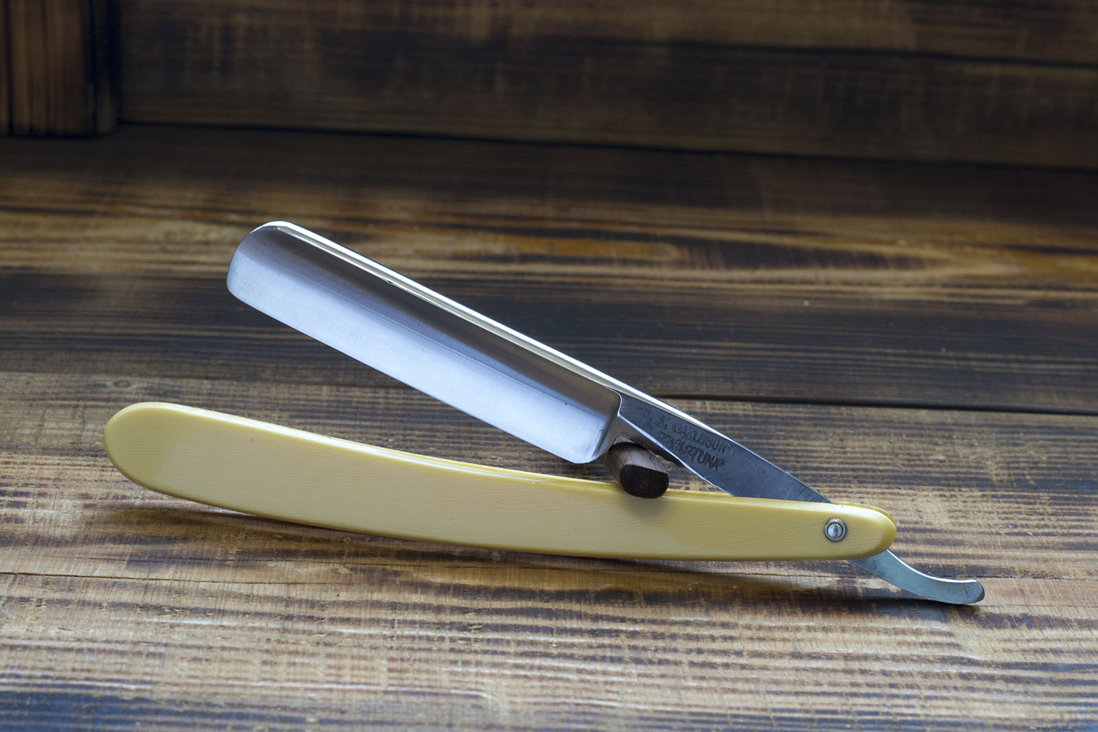 Опасная бритва производства 20-30-х годов 19 века, выпущенная на знаменитой фабрике основателем которой был Люк Кадман (Luke Cadman). Характерной особенностью данного полотна является наличие выраженной вогнутости, что было редкостью для того периода, по сути эта бритва является одной из первых попыток производителей сделать холлоу граунд, надо сказать что попытка весьма успешна. Бритва имеет вогнутость порядка 1/2, изготовлена из качественной литой углеродистой стали, ширина полотна 18 мм, (11/16+), костяная рукоять с оловянным клинышком. Бритва заточена и готова к бритью, прекрасно подойдет для новичка, но так же может являться ценным экземпляром для коллекции. Продано Cast Steel Show