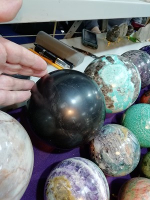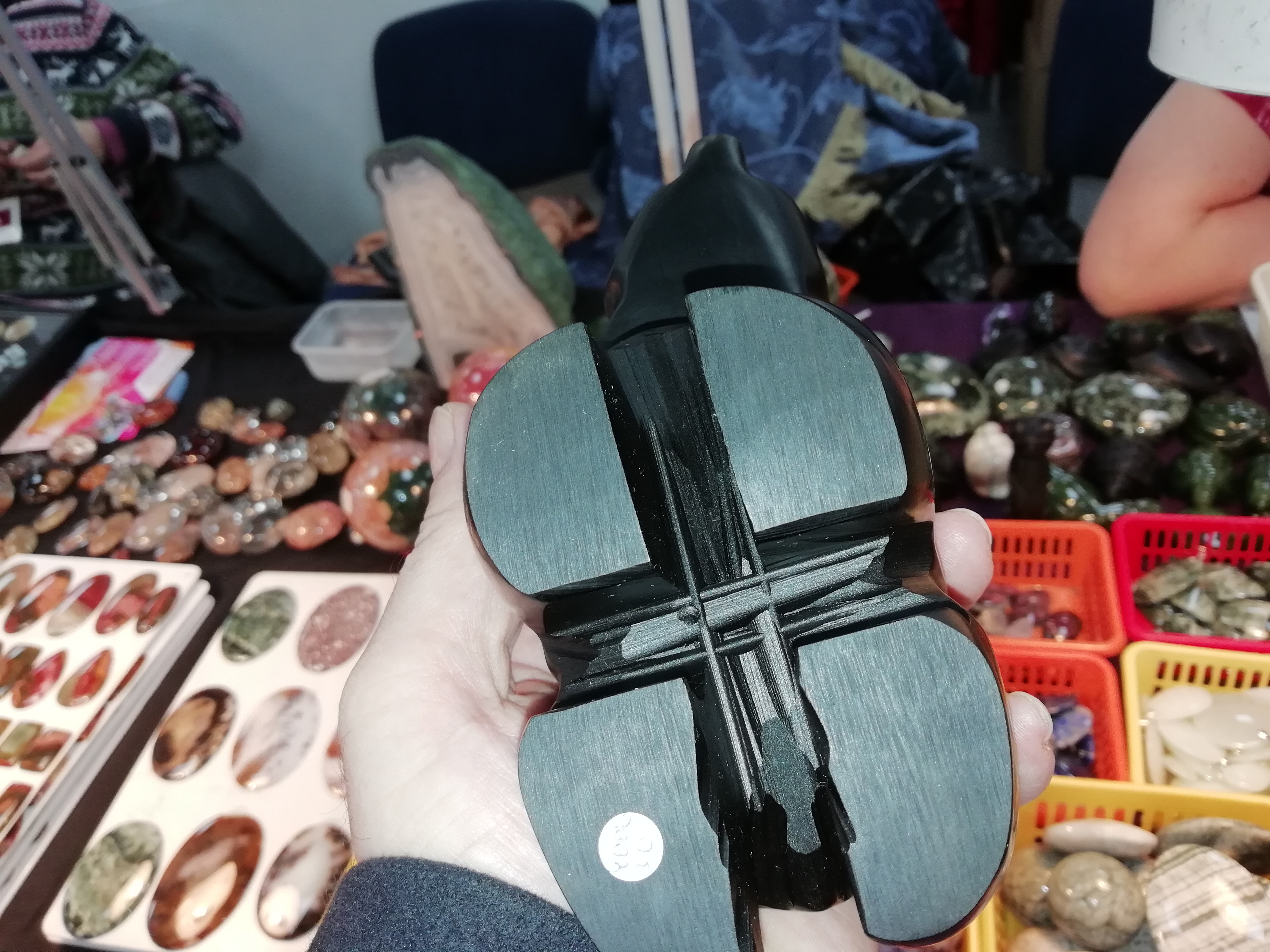 Полируют по-разному, наши в "блеск" не полируют, в основном. Или сорт такой идёт. Но те же армяне, грузины, чехи - более блестяще доводят. Ну судя по словам нашего изготовителя - это только 2мкм алмазом он доводит фигурки, далее не утруждается. Мне там ещё мужики другие говорили технологию - как доводить - с алмазами, углём каким-то на оргалите - чотто такое, но после "оргалита" я слушал менее внимательно. Сунули пригласительный на март, нахаляву Во, на обратной стороне написан календарь выставок - ежемесячно в 2019г.!!! Выставке - 25 лет. PS Ну то, что написал выше - это только со слов иркутян - я не пробивал в инете правду, может они в чём то ошибаются... даже уверен в этом по некоторым высказываниям. По ценам - плашка 100х100х10 стоит 700руб (вниз не упал, был не хозяин), маленькие овалы, круги, квадраты - до 75х75х5... 75х50х5 типа 300...500р у производителя! У прочих это уже может быть и 1тыр! Малые кулончики-висюльки - 200...250р Плаха типа 120х130х50 с охряпанным краем - 3000р Шарики - 500...700 руб d50 А были ещё всякие типа с мелкими шипиками, типа массажные - а интересный эффект!