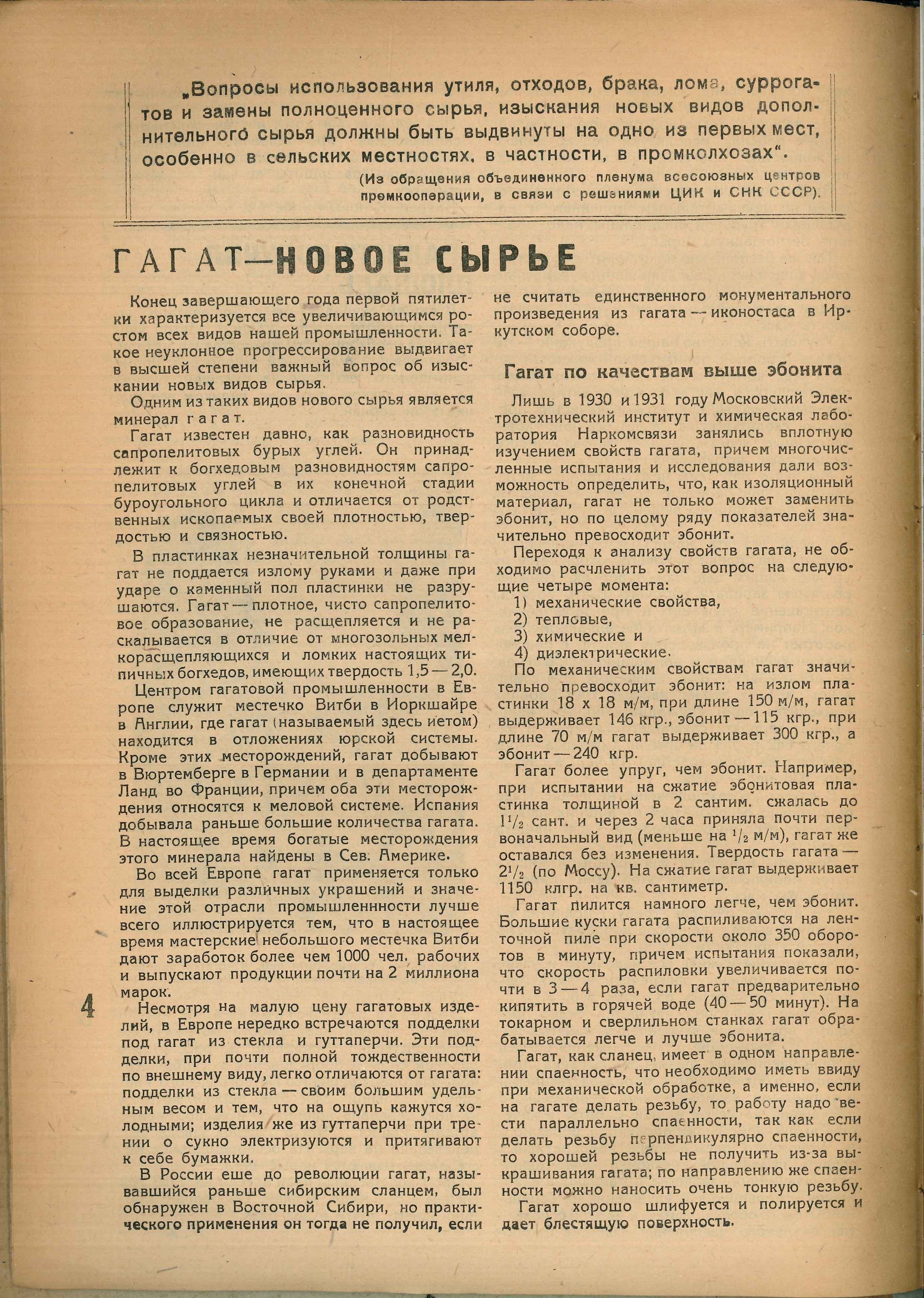 Гагат!источник "Ленинградская Промкооперация" №24(66), декабрь 1932 года.