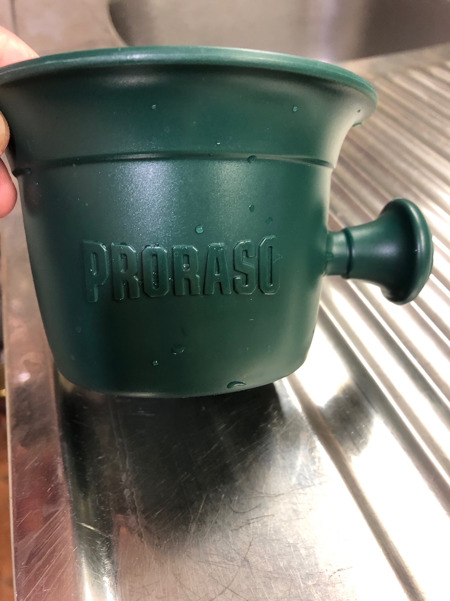 Выбор кружкиА я все мечтал сначала о кружке специальной, потом о скатлле. В итоге взял две пиалы (кесешки, не знаю как в какой стране называются). В нижнюю горячей воды, в верхней пены. Прям такого «вау, бритье вышло на новый уровень» не испытал, тёплая и тёплая пена (а почему ей в ванной быть холодной?). Единственный плюс таких чаш и скаттлов- насечки и пупырки внутри, которые ускоряют взбивание пены аж на целых 10 секунд. И тут гулял я по магазинам. Встретил кружку-чашку-супницу с ручкой (не знаю я точного названия сия сосуда) нужного размера, а внутри рефление как на спец чашах. Чаша из коричневого стекла, лет 15 назад такую посуду называли «небьющимся стеклом». Так вот. Набираю тёплой воды в неё для замачивания помазка пока умываюсь, правлю бритву, наношу прешейв. Пока набираю мыло на помазок, чаша стоит под струей кипятка из крана, прогревается. Теплоты хватает на весь сеанс бритья.