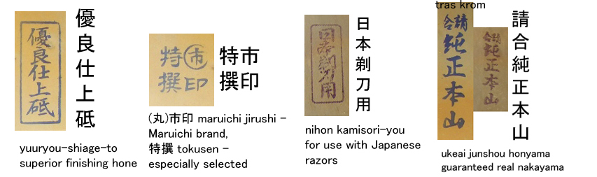 Ну вообщем надпись можно прочесть, как "Гарантированно истинная хонияма". Иногда истинная хонияма переводится, как Накаяма. Но в этом случае, имеется в виду не шахта Накаяма. А накаяма, как имя нарицательное, как общее обозначение, символизирующее высшее качество хониямы. У японцев все непросто и много сравнений и символизма. Точно могу сказать, что в этом штампе нет ничего про шахты Накаяма и Нарутаки Мюкода.