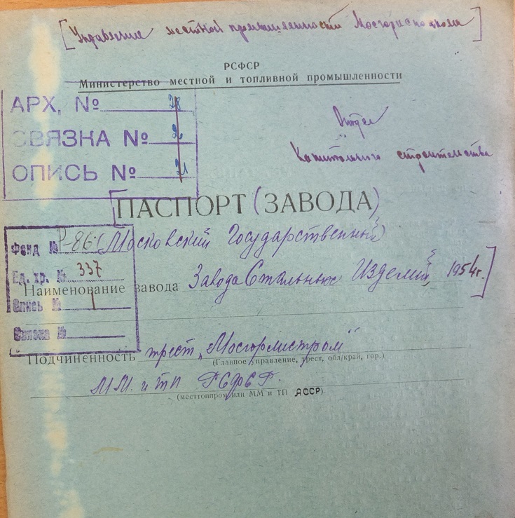 а с июня 1954 по 01.02.1955 СТИЗ снова оказался в подчинении ММП треста Мосгорместпрома.