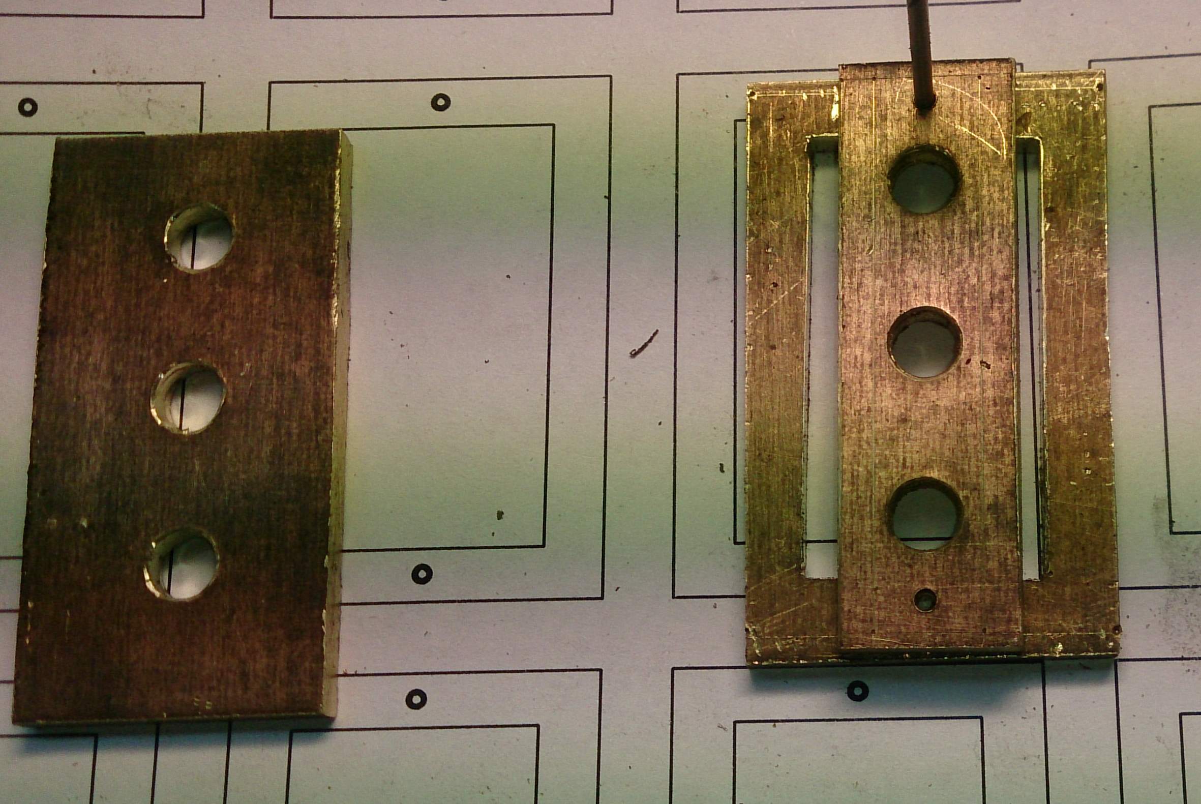 Распечатал и перевел контуры на латунь. Вырезал, обточил, где нужно - просверлил ,