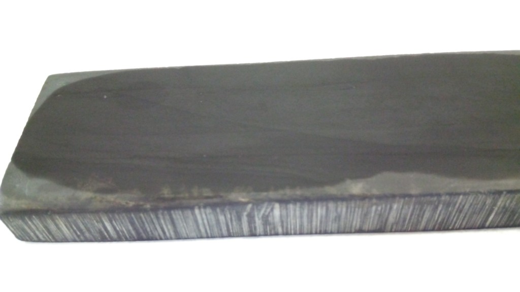 Сыростанский (Атлянский) натуральный сланец. Оселок бритвенный доводочный. Ко мне попал из старой парикмахерской. На мой взгляд порядка 5-6 кГр. Размер 130х33х10 Выровнян и доведет на порошке КК 1000# и собственной суспензии. Имеет приятный тактильный отклик,мягкий бархатный ход. Какие либо паразитные включения, в отличие от атлянского инструментального оселка отсутствуют.
