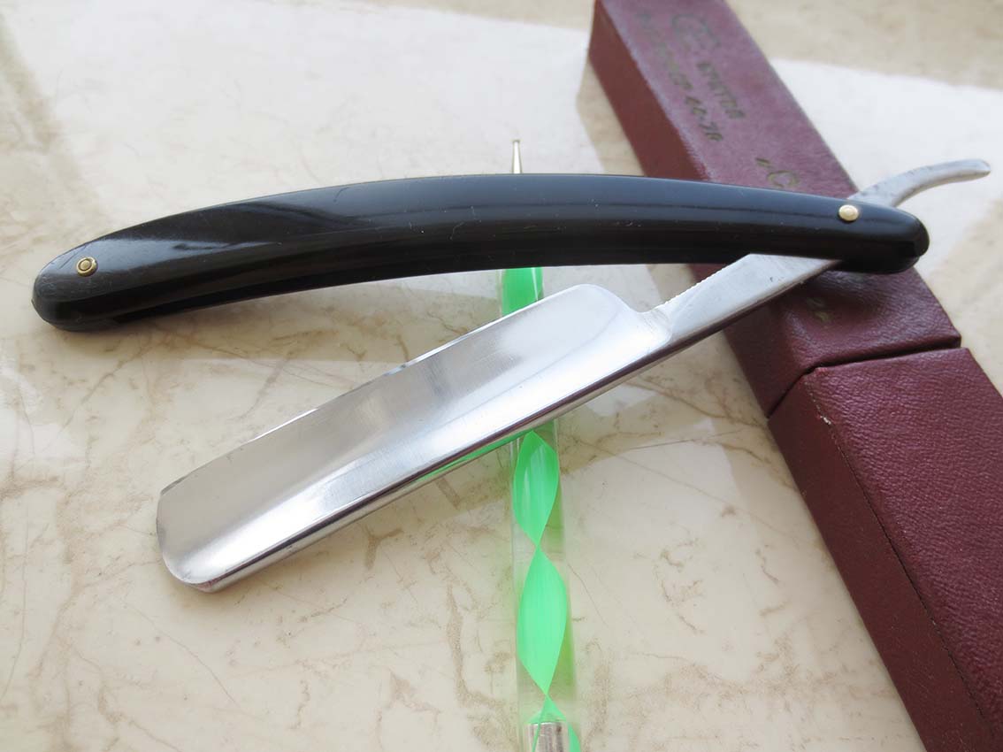 Шеффилда, имя которого на слуху у каждого уважающего себя бритвомана..) Старинная опасная бритва английского производителя Wade & Butcher Sheffield. Ширина клинка почти 7/8 дюйма (22мм), новая пластиковая оправа, заклёпки - нейзильбер, клинышек - олово. Знаменитая режущая кромка тоненькая и равномерная, правиться и точиться в дальнейшем будет без проблем. Бритва в очень приличном состоянии, и не смотря на почтенный возраст, брить будет так же шикарно, как и в свои молодые годы, такой добротный английский клин, который подойдёт, как новичку, так и опытному пользователю. Полностью готова к работе, проведены всё заточные и профилактические работы. Направлена и продезинфицирована, купил, сделал пену и брейся, как правильный мужик. При покупке комплекта с ремнем для правки пересылка по России бесплатно. Начинающим подскажу по использованию и уходу за инструментом. Цена - 8500 рублей. Бесит, когда приходится пользоваться бритвой моложе себя...