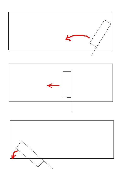 Заточка улыбчивой бритвыПришел к такому выводу, что даже бритвы с прямой линией обуха, надо точить не прямыми движениями. Пришел после того, как потратил много времени на прямую заточку разных бритв, когда вроде все касатся, а в микроскоп смотришь и то центр не проточен, а то пятка или нос, хотя вроде фаска ложится ровно, нигде ничего не отрывается. В этом случае можно долго и муторно выводить кромку по всей длине, стачивая полотно по ширине, это долго и утомляет. Поэтому сейчас затачиваю дворниками, по не длинными размашистыми, а коротким туда-сюда, потихоньку двигаясь по камню. Вот попытался изобразить, суть еще в том, что обух я не отрываю, он весь лежит на камне. Когда протачиваю нос, подворачиваю бритву и 2/3 или половина полотна уже висит в воздухе, при проточке пятки, делаю небольшой на нее акцент, при этом обух у носа совсем чуть приподнимается, но без фанатизма. В таком случае удается получить на бритвах с прямым обухом еле заметную улыбку и проточить кромку везде. На бритвах с более вогнутым обухом, можно получить улыбку, повторяющую линию обуха