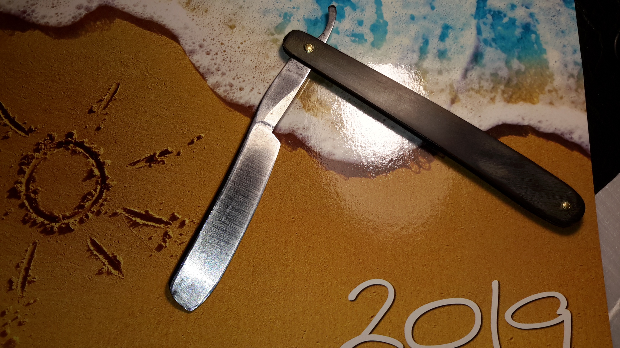 уточенный "Подарок" ЗТВ 59г с интересной ручкой. Первый раз увидел оправу с таким рисунком. Качество скорее заводское, думаю ограниченная партия, типа для подарков отличившимся северянам, полярникам и т.д. На полотне - ледокол "Ленин". Погуглил - 3 декабря 1959 года атомоход Ленин был сдан Министерству морского флота в эксплуатацию. Наверняка - это бритва самого капитана! Бесит, когда приходится пользоваться бритвой моложе себя...