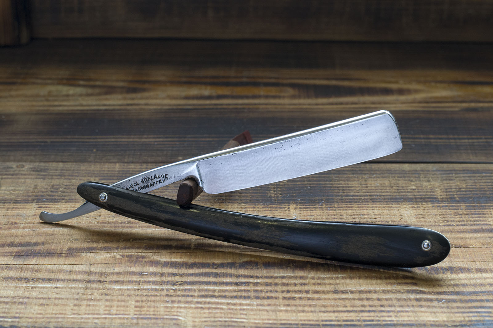 Крайне примечательная опасная бритва шведского производства, сделанная в коммуне Бурлэнге, расположенной в центральной части Швеции. Об этом есть указание на эрле - a-bol. Borlange - Arbetar Bolaget Borlange (рабочая коммуна Бурлэнге), слово Maskinaffär по сути означает "механнический цех", Итого имеем Механический цех коммуны Бурлэнге, являвшейся одним из центров черной металлургии в Швеции. Марка Бенгалл имеет английские корни, вполне вероятно что шведские экземпляры выпускались с разрешения английских представителей марки Бенгалл, которые судя по всему имели с Швецией торговые отношения. Я встретил большое число английских Бенгаллов 20-30 годов 19 века в Швеции, что косвенно подтверждает мою теорию. Вероятно что англйское представительство передало часть прав на производство Bengall в начале 20 века, когда опасные бритвы начали терять свою массовую актуальность. Но повторюсь, это всего лишь мои предположения, основанные на долгом опыте работы с бритвами Bengall обеих стран производства и долгих размышлениях на эту тему. Данное полотно изготовлено в начале 20 века, форма типично шведская, узкий в 5/8 (16мм.) клин с крашенной деревянной рукоятью. Часть краски от времени слезла и я решил не восстанавливать покрытие, так как это придает бритве определенный винтажный вид. Бритва изготовлена из шведской углеродистой стали, более твердой чем английские аналоги в сочетании с обухом в 5 мм это должно дать длительное удержание режущих свойств кромки и мягкое комфортное бритье. Бритва заточена и готова бритью. Продано Maskinaffär Show ]