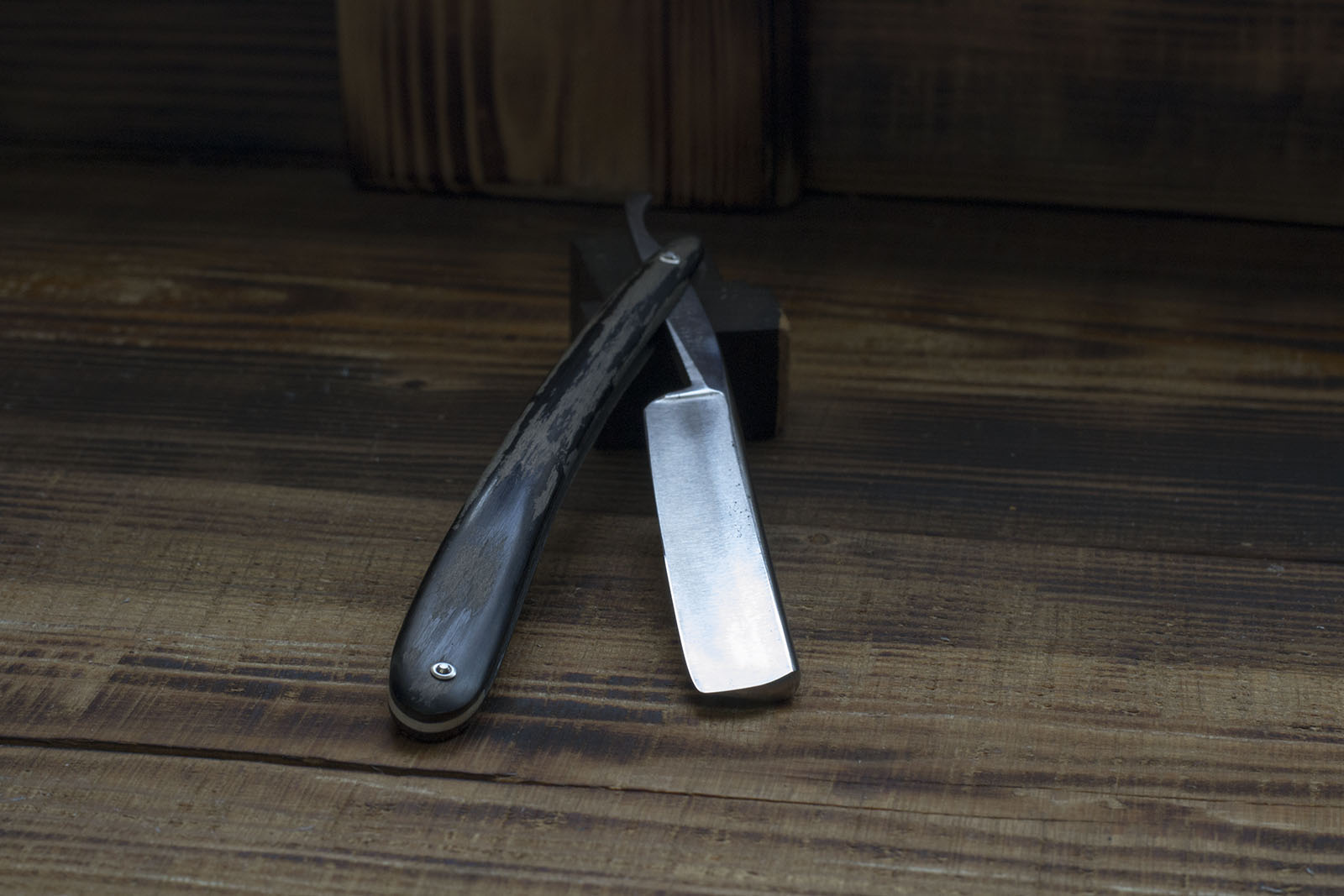 Одна из редких бритв моей коллекции - английский клин от Joseph Wostenholm, торговой марки EBRO. На полотно нанесено травление с символами масонства и поскольку резист перед травлением наносился вручную, каждую такую бритву можно считать отдельным штучным произведением искусства того времени. Бритва произведена середине 19 века, выполнена из качественной углеродистой стали, геометрия полотна на довольно высоком уровне, поэтому было решено оставить бритву в максимально оригинальном состоянии с. Я всего лишь отполировал полотно, немного поработал с травлением и произвел заточку, так же была изготовлена новая рукоять из рога африканского буйвола. Ширина 21 мм., бритва заточена и готова к бритью, отличный коллекционный экземпляр в редкой сохранности. продано EBRO Show
