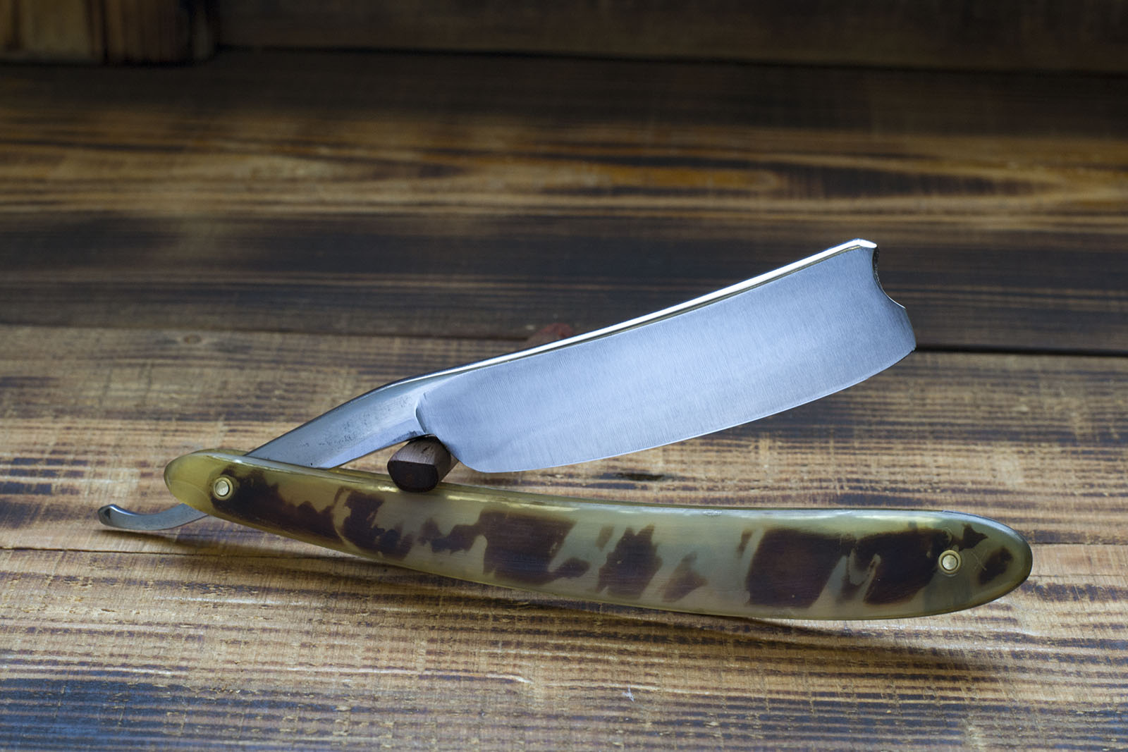 Опасная бритва от Джозефа Востенхольма торговой марки Ebro. Бритва имеет довольно скромные размеры в 5/8 (16.6 мм.), вогнутость полотна примерно 1/2, роговая рукоять, немного длинная, но я уверен что родная, так как не было замечено каких либо следов перестановки - оба пина были одинаковыми, аутентичные латунные шайбы, которые удалось сохранить. Бритва точилась мало и аккуратно, поэтому размер полотна близок к оригинальному. На эрле присутствует клеймо England, что может смутить любителей датировки бритв по Standart Guide, несмотря на его наличие я уверен что бритва выпущена ранее 1890-х, а именно дата выпуска примерно 1860 - 70 гг, об этом говорит и период работы фабрики, и форма полотна в сочетании с материалом рукояти. Бритва имеет прекрасную геометрию - фаска тонкая и равномерная по всей длине, углеродистая сталь высокого качества хорошо проявившая себя в заточке. Бритва крайне интересна, особенно рекомендую новичкам, так же будет удобна при окантовке. Продано EBRO Show