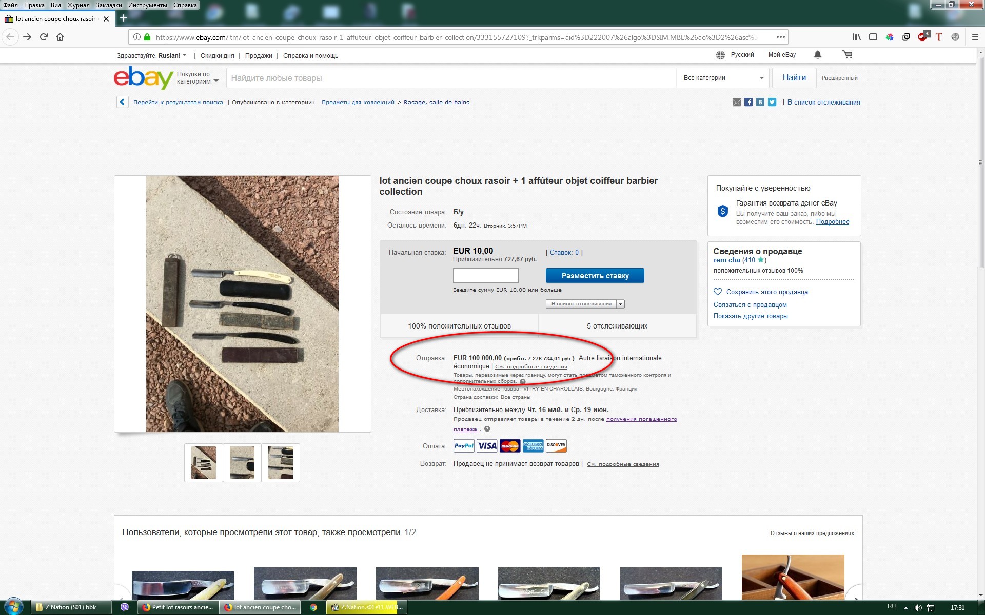 Аукционы: плагиат, развод и "великолепные" описанияRuslanK, да, нормально. Продавец сам, своим пешком, из самой Франции, принесёт лично вам в руки